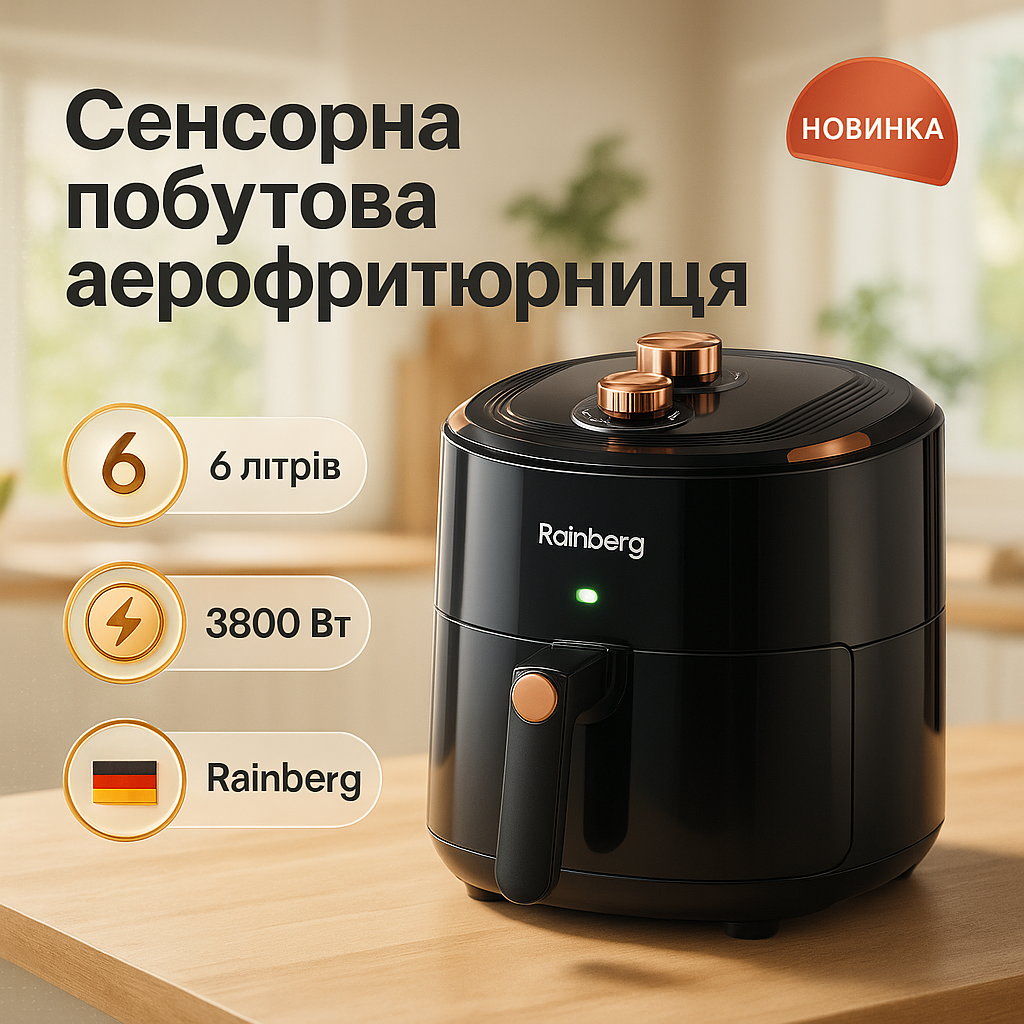 Фритюрниця Rainberg RB-2242 використовує гаряче повітря для приготування їжі.