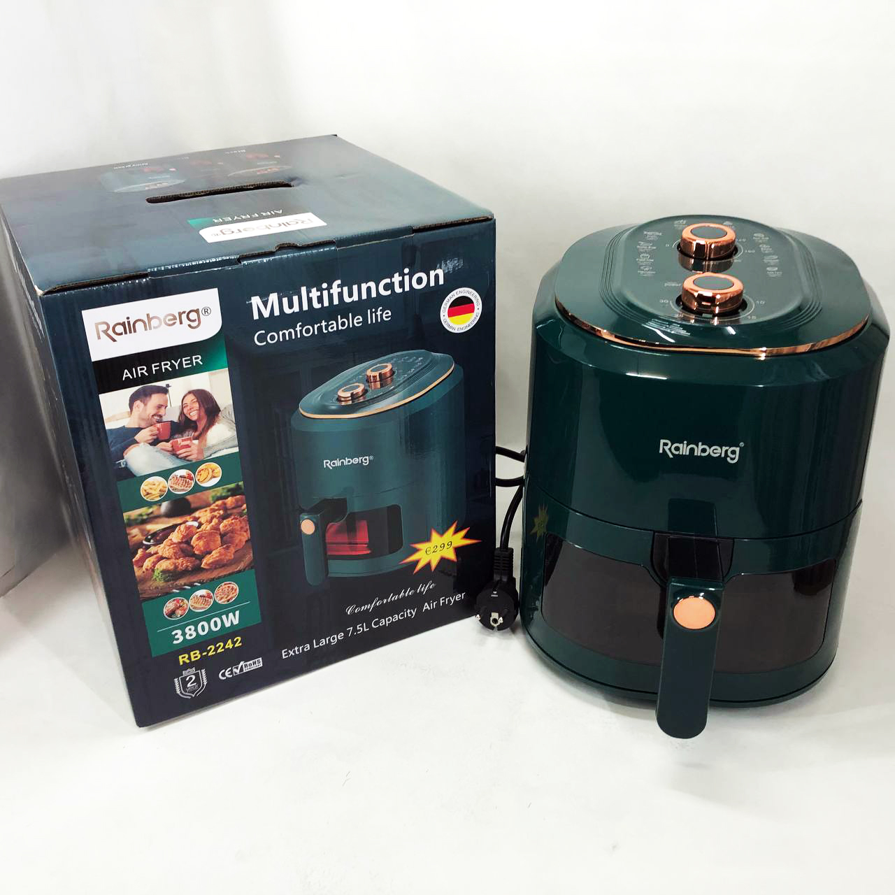 2403202669c2da0750ba7.jpegАерофрітюрниця для дому з таймером Rainberg RB-2242 на 7.5л безмасляна фритюрниця 3800Вт Green