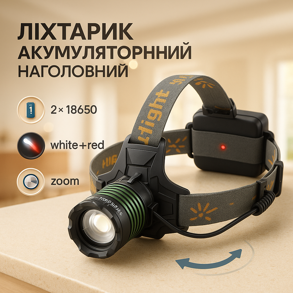 Акумуляторний налобний ліхтар – це надійне та зручне джерело світла для вашої комфортної та безпечної активності в умовах недостатнього освітлення.