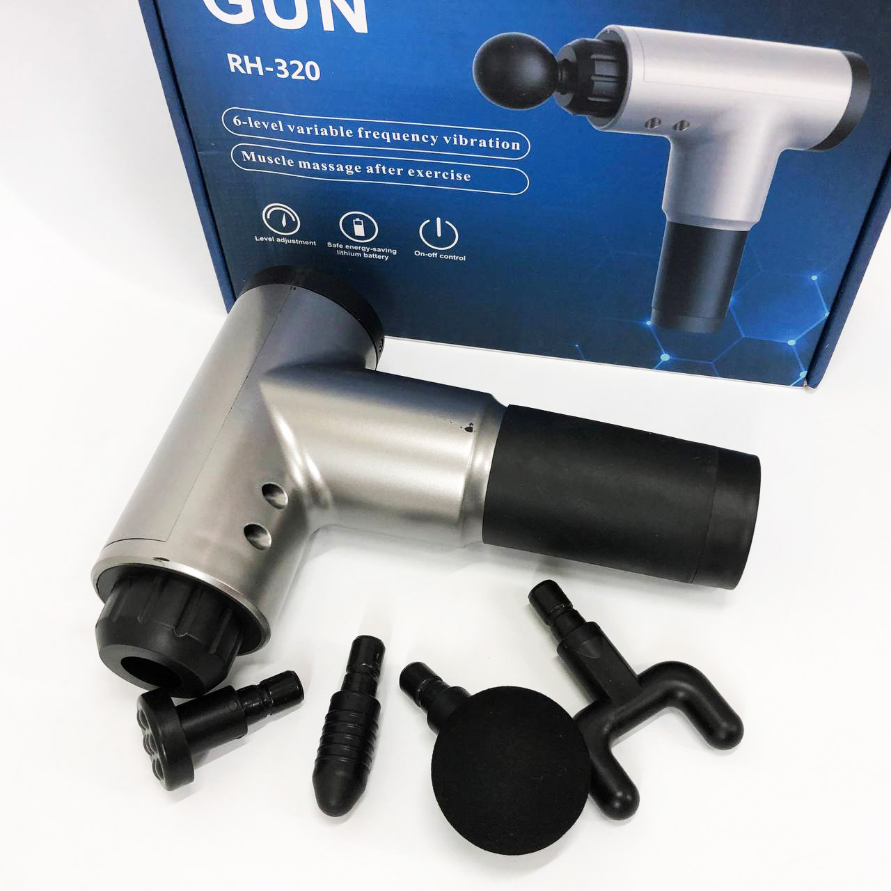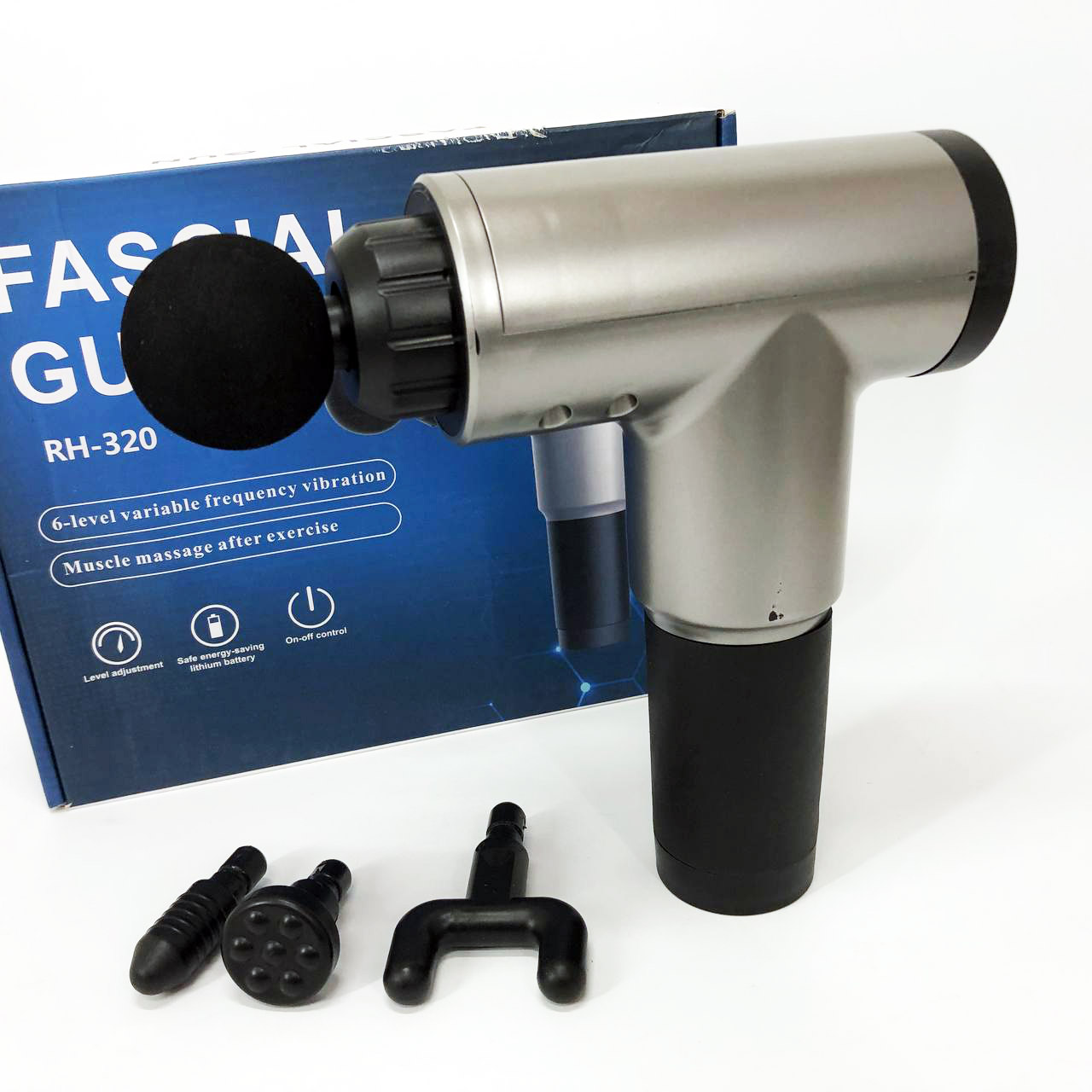 Ефект досягається за рахунок впливу на внутрішні шари сухожиль, м’язової тканини та фасції, які не викликають болю. Масажер виконаний в ергономічній формі у вигляді пістолета, він комфортно сидить у руці, ним зручно користуватися. У комплекті є 4 насадки, для впливу на певні групи м’язів ніг, сідниць, спини, грудей, зап’ястя і кісточок. Оптимальна тривалість сеансу – 15 хвилин, працює від вбудованого акумулятора.