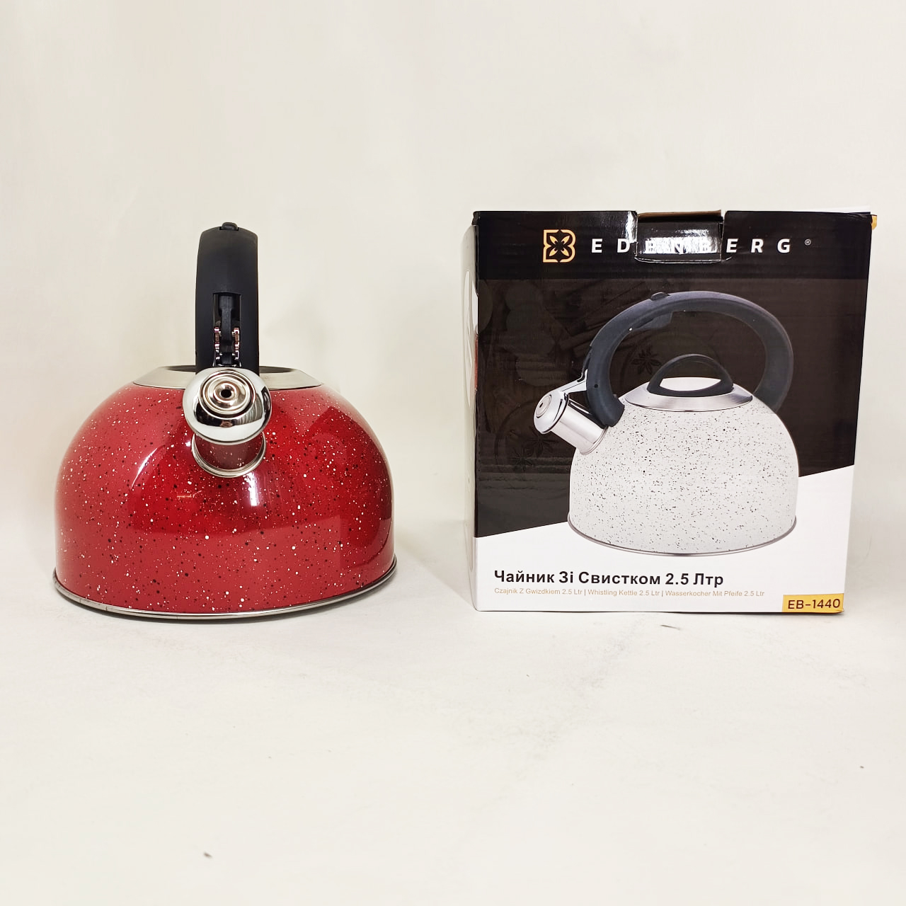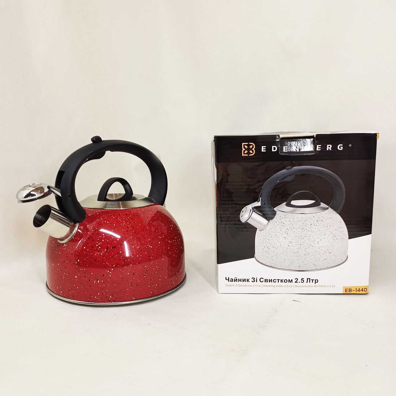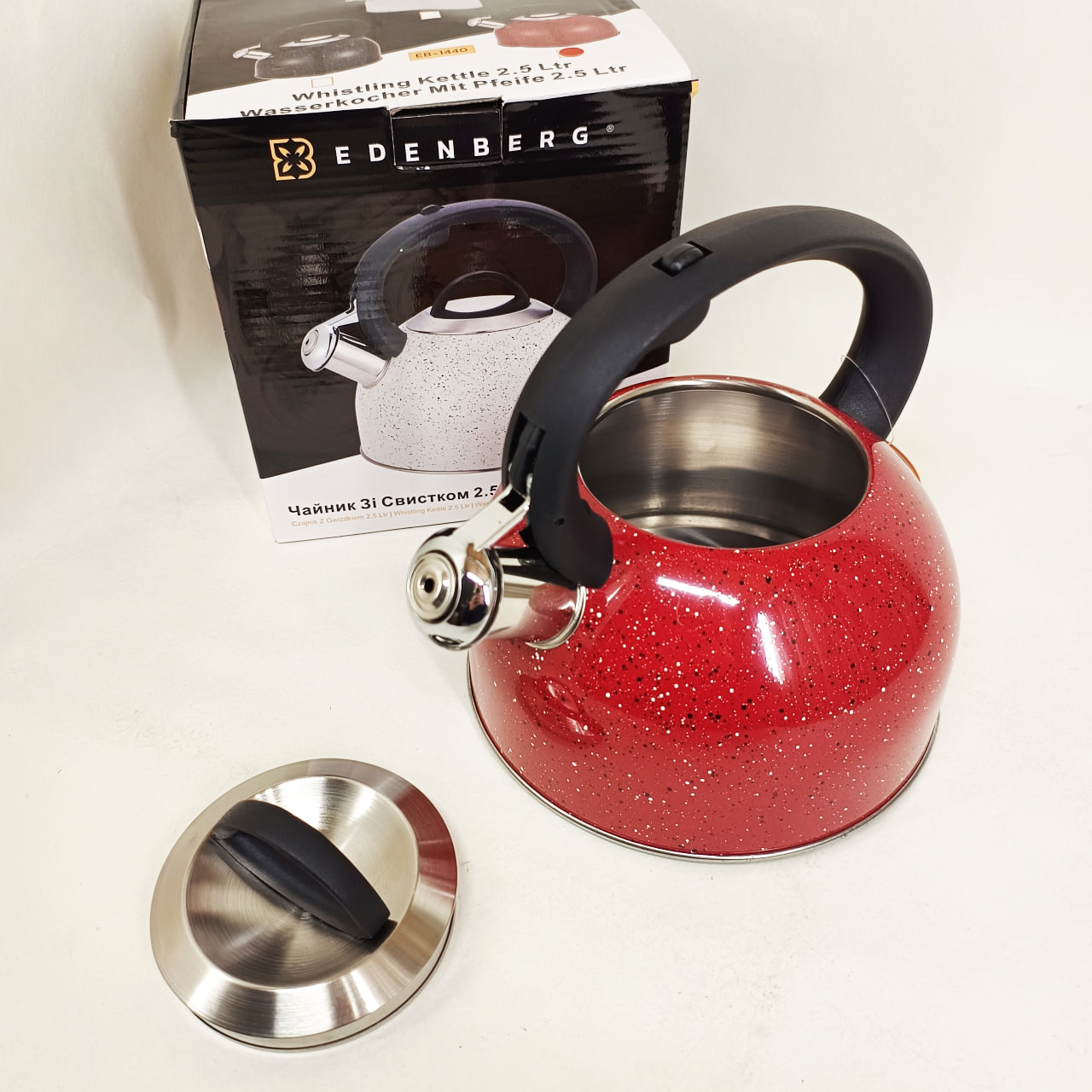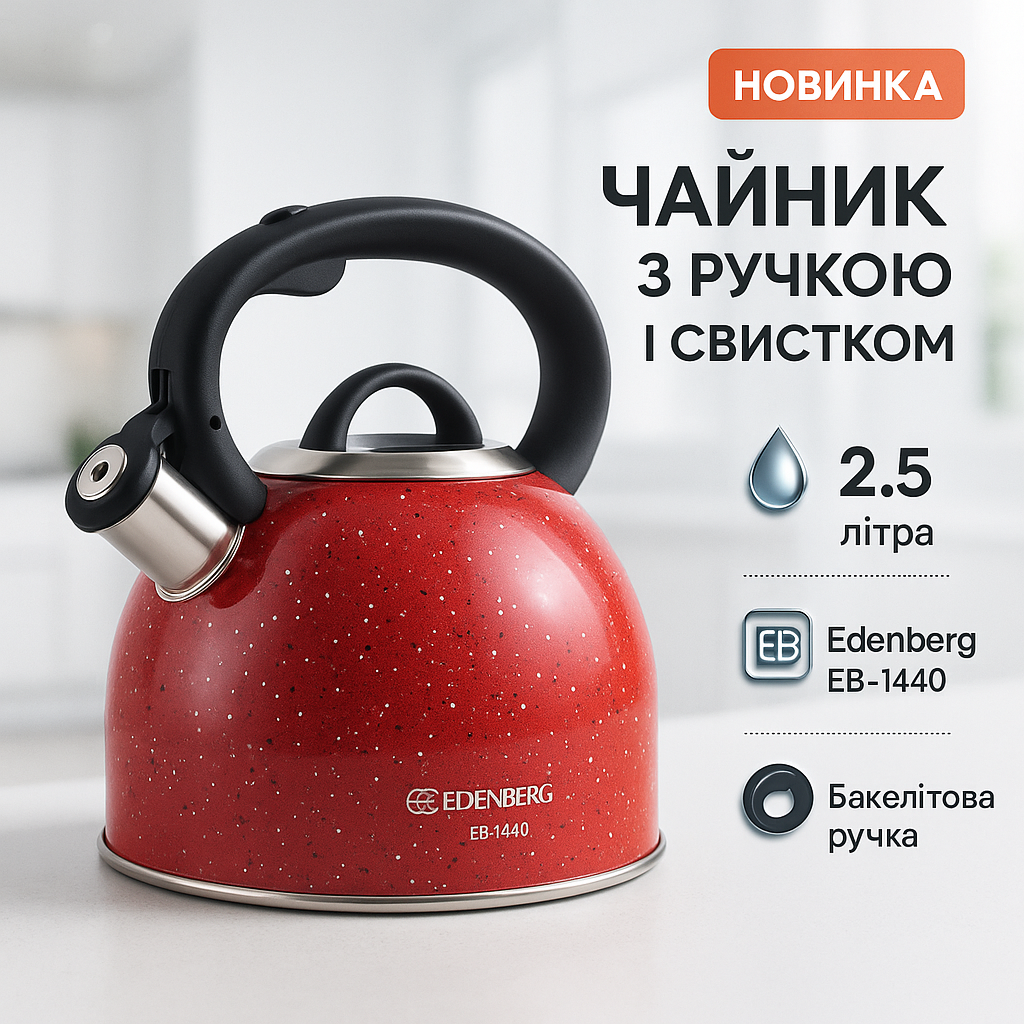 Чайник Edenberg EB-1440 — це надійний кухонний аксесуар, що поєднує ефективний нагрів і зручність використання. Виготовлений з нержавіючої сталі, цей чайник забезпечує швидкий і рівномірний розподіл тепла, що значно економить ваш час при кип’ятінні води. Свисток сповістить про готовність, додатково звільняючи вас від необхідності постійно контролювати процес.