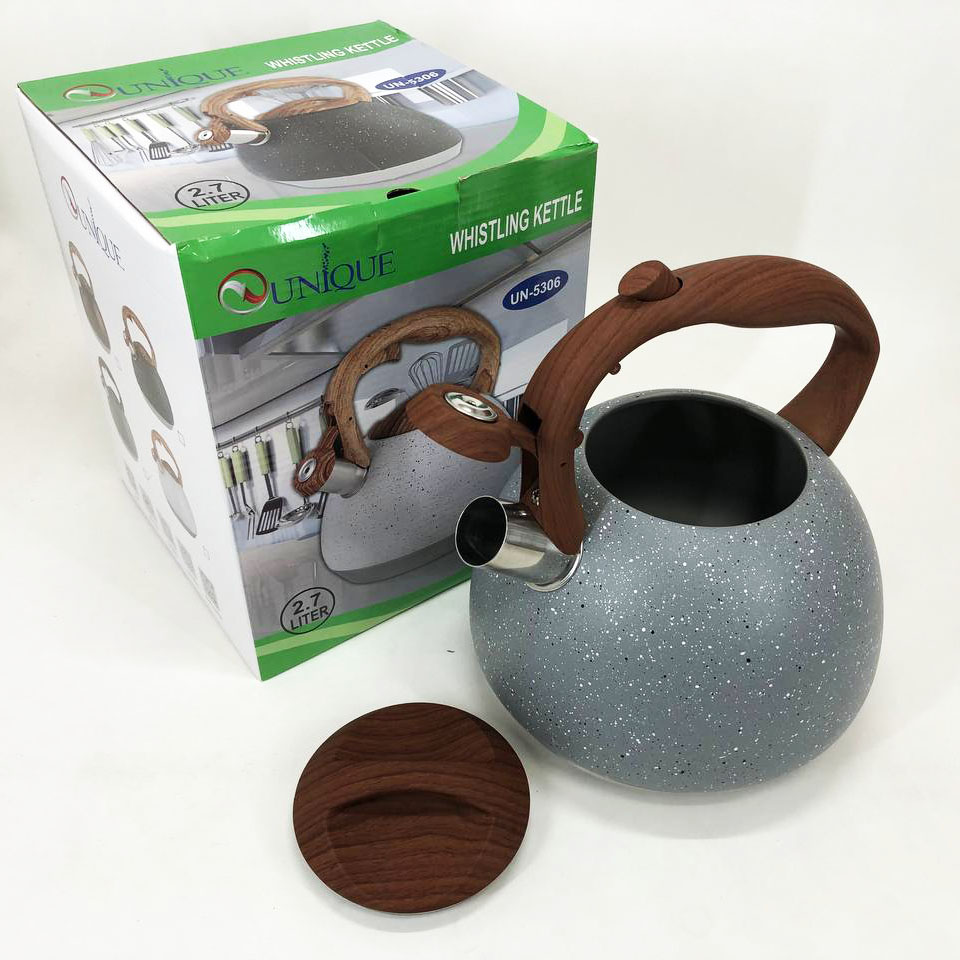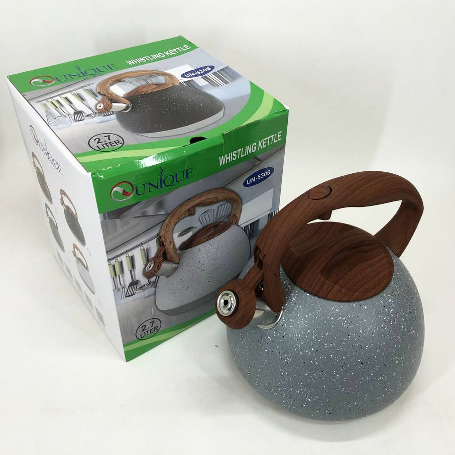 Чайник Unique UN-5306 — це функціональне та довговічне рішення для сучасних кухонь. Виготовлений з екологічно чистої нержавноїчної сталі з мармуровим покриттям, він поєднує в собі естетичну привабливість та практичність. Дев’ятишарове дно забезпечує ефективне та швидке закипання води, економлячи ваш час та енергію. Ергономічна конструкція зі свистком та зручною ручкою робить процес використання максимально комфортним і безпечним.