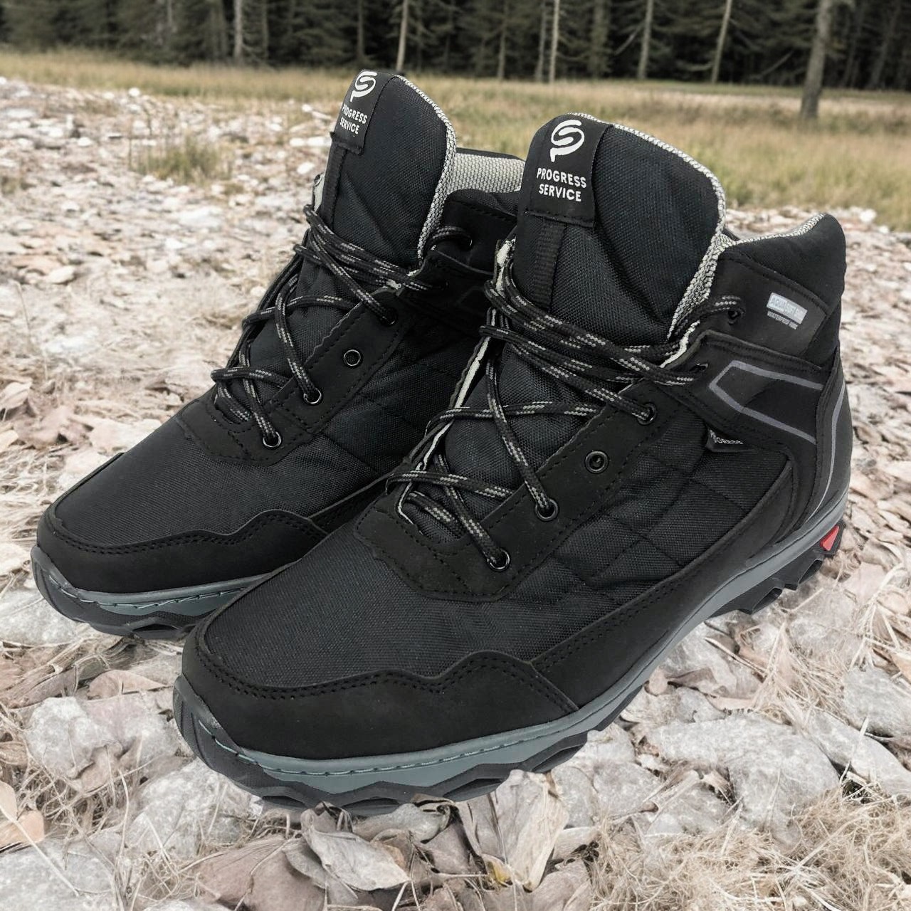 Сучасний спортивний дизайн та універсальний чорний колір дозволяють поєднувати черевики як з повсякденним одягом, так і з активним outdoor-екіпіруванням. Масивна підошва з глибоким протектором забезпечує надійне зчеплення з різними поверхнями – від мокрого асфальту до легкого бездоріжжя. Це чудовий вибір для міста, походів та заміських прогулянок.
