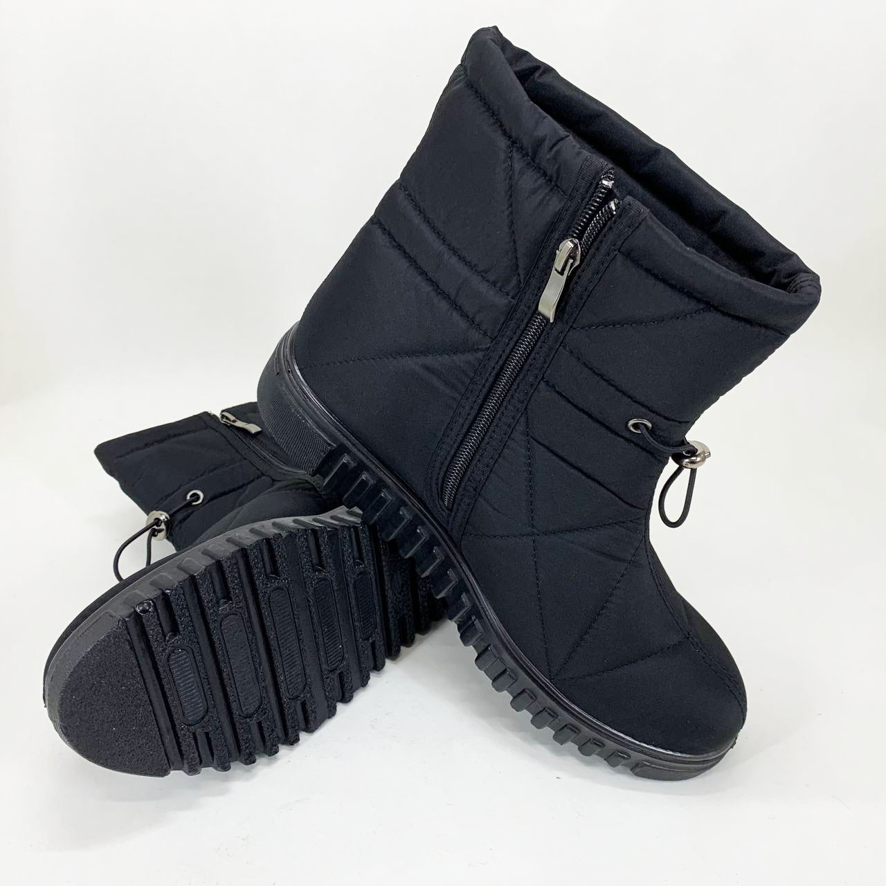 Ці жіночі утеплені черевики — ідеальний варіант для комфортної зими. Завдяки сучасному дизайну з геометричною прострочкою, модель виглядає стильно та гармонійно поєднується як з повсякденним одягом, так і з верхнім зимовим гардеробом. Матова поверхня з легким блиском додає елегантності, а декоративна стяжка робить взуття візуально витонченішим.