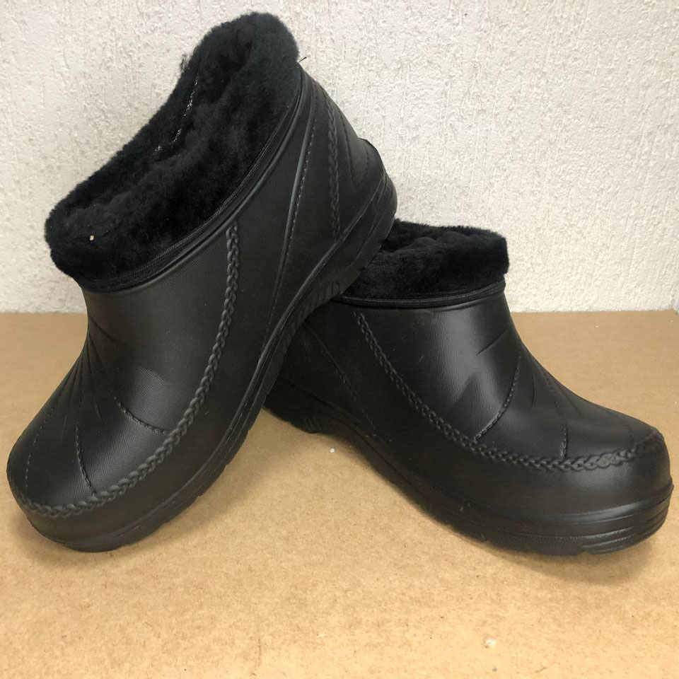 Стильний рельєфний декор з боків у вигляді тиснення надає взуттю витонченого вигляду, підкреслюючи жіночність образу. Темний колір залишається практичним у повсякденному використанні, а м’який край з хутром додає затишку. Гнучка підошва з протиковзким малюнком дозволяє впевнено почуватися навіть на слизькій поверхні.