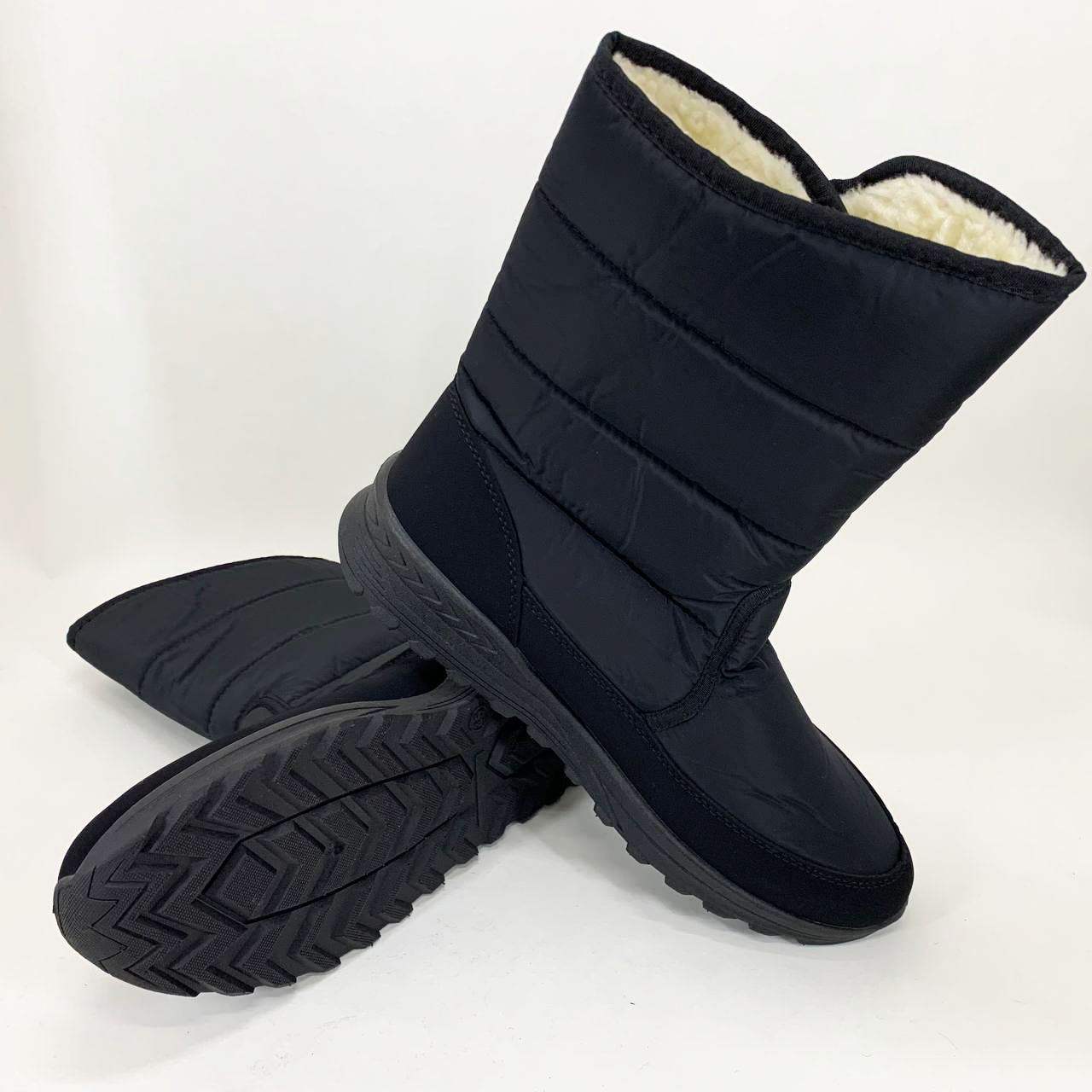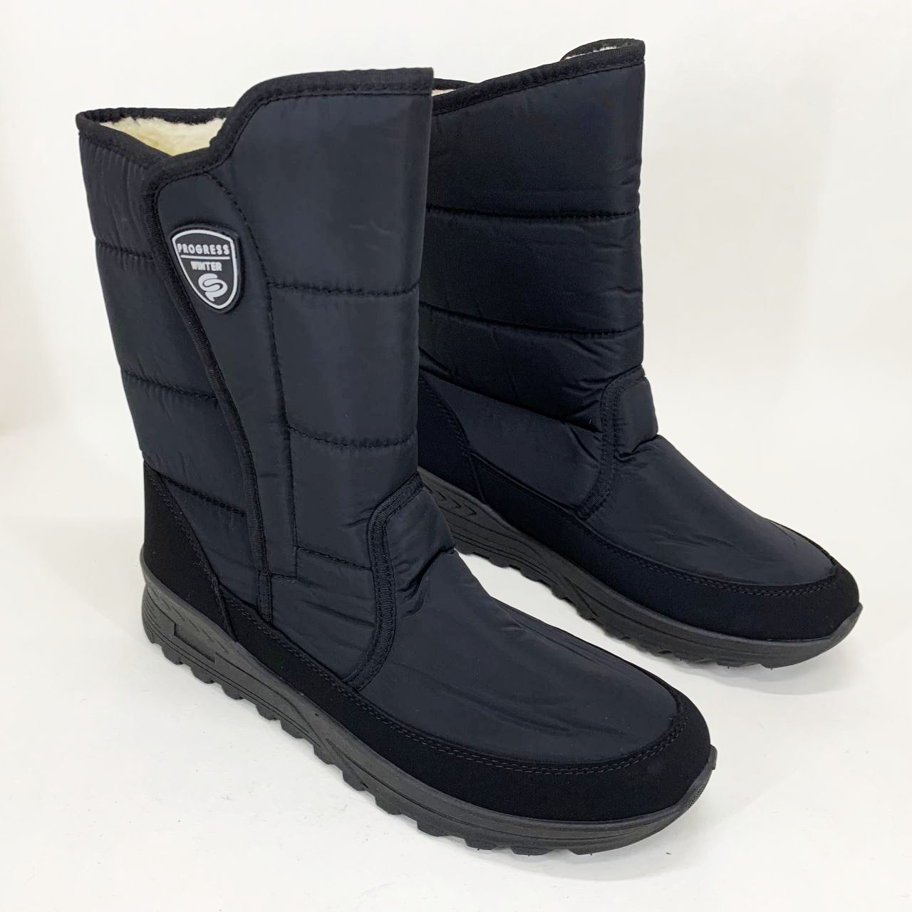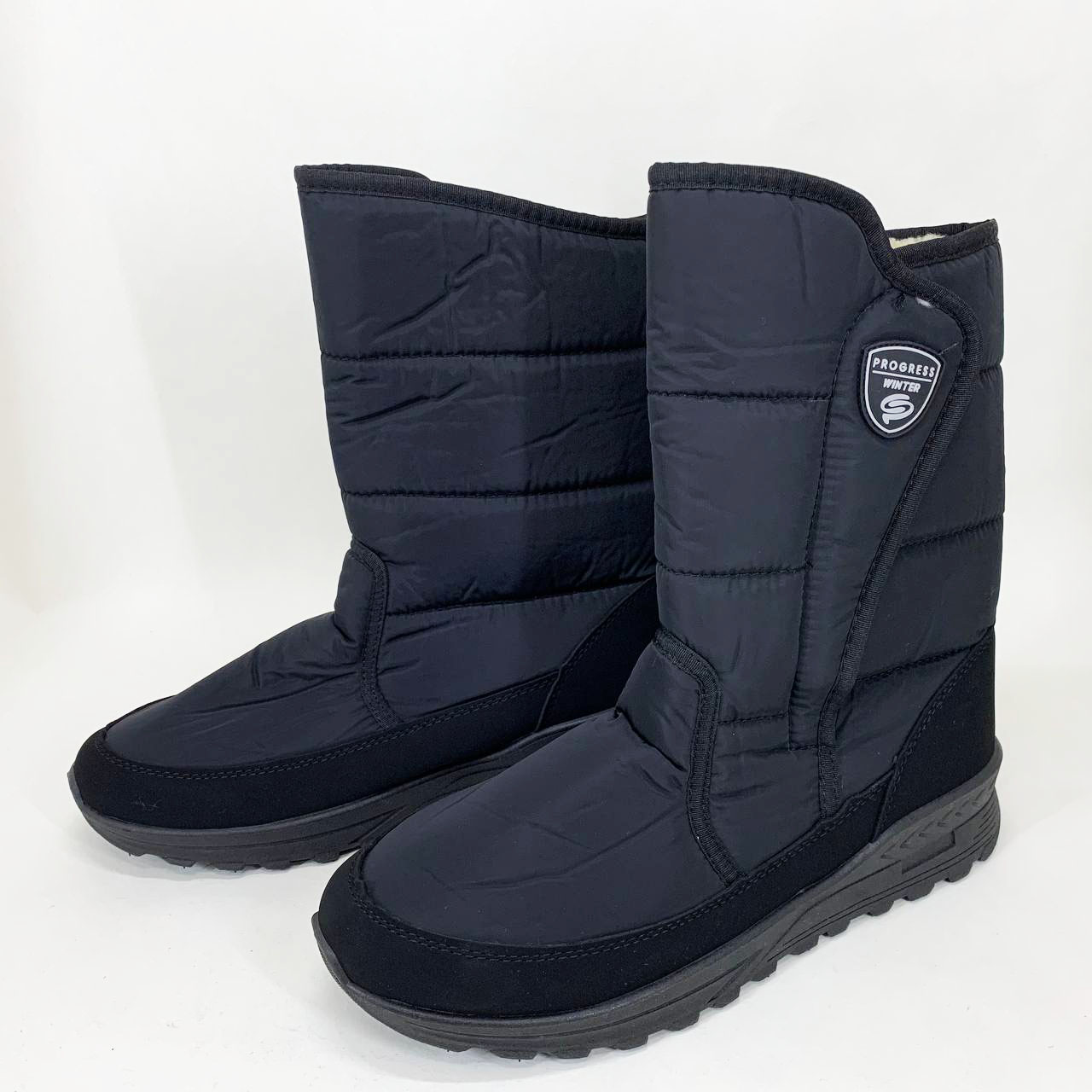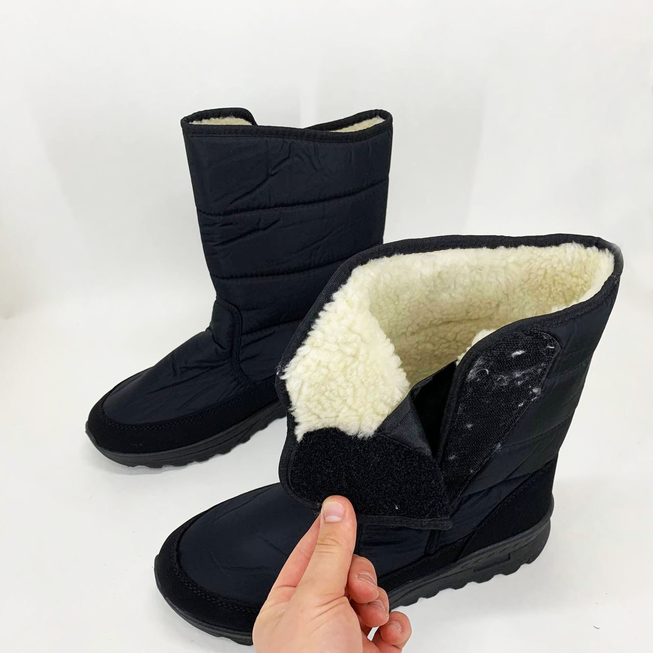 Чорний колір та мінімалістичне оформлення роблять цю модель універсальною — підійде як для повсякденного носіння, так і для активного відпочинку. Чоботи мають зручну посадку, легку підошву з вираженим протектором, що гарантує стійкість на слизьких поверхнях.