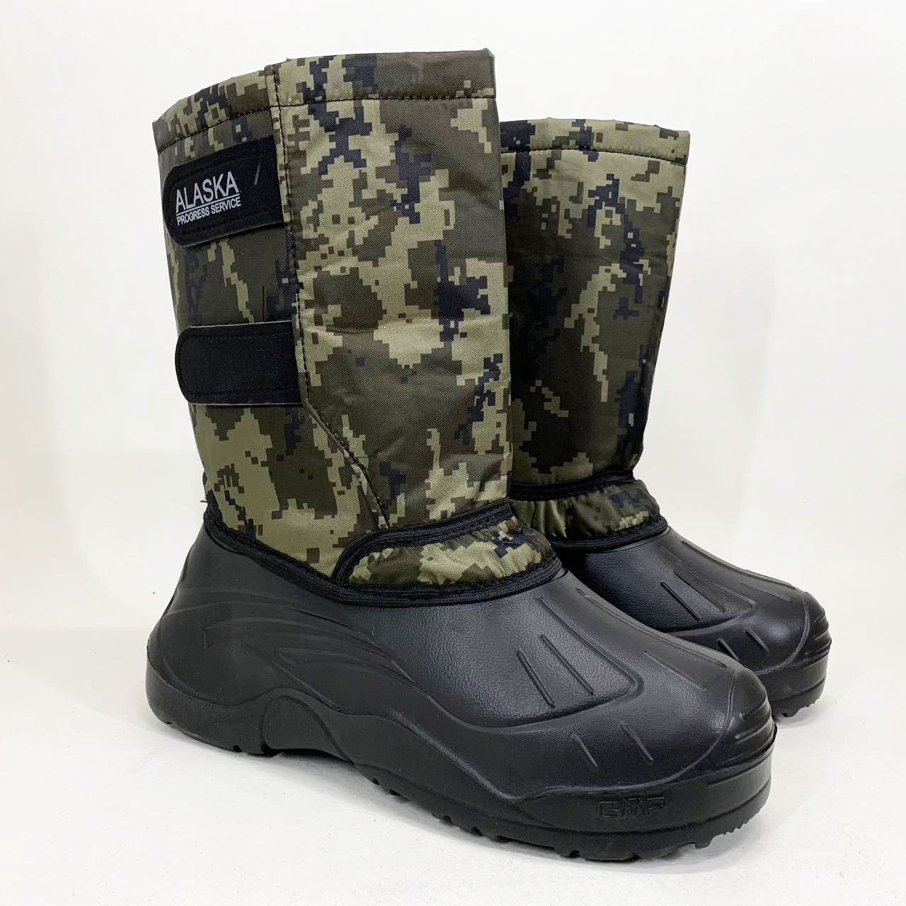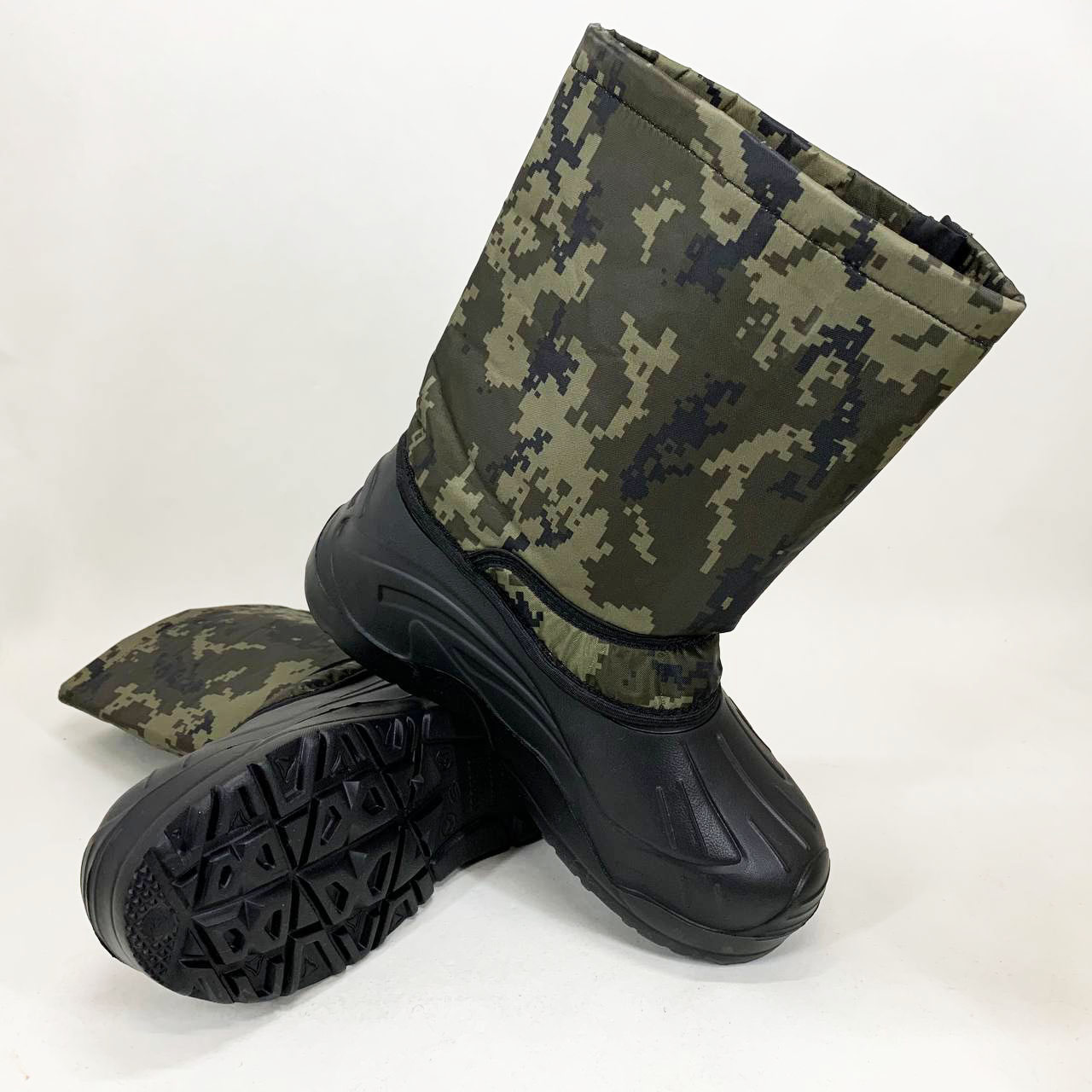 Утеплені зимові чоботи з камуфляжним верхом — це надійне взуття для тих, хто проводить багато часу на вулиці в холодну пору року. Завдяки щільному тканинному голенищу з сучасним піксельним принтом і литій основі з ЕВА-матеріалу, вони ефективно захищають від вологи, снігу та бруду. Внутрішнє утеплення створює комфорт навіть при сильних морозах.