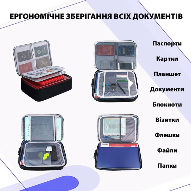Дорожній кейс сумка органайзер для зберігання документів та гаджетів з кодовим замком водонепроникний тканинний