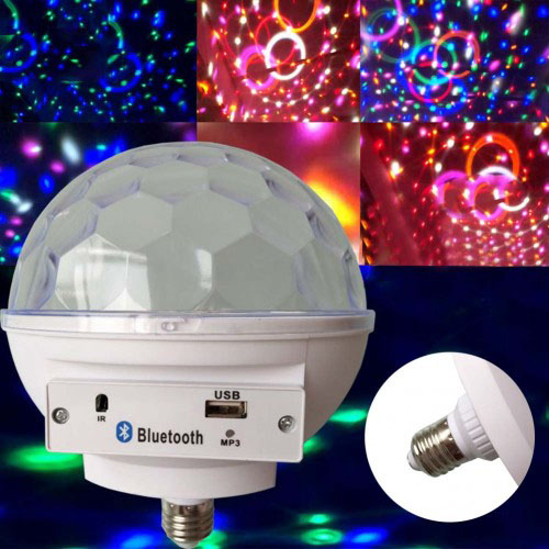 Лампочку можна використовувати як для веселого проведення часу в родинному колі, друзів, так і для декору в барі, ресторані та інших розважальних закладах. Лампочка оснащена мотором, що дає незабутній ефект у стилі диско. Її можна вкручувати у звичайний цоколь, керуючи звичайним вимикачем, а можна керувати з пульта дистанційного керування. Вбудовані динаміки дозволяють відтворювати музику як із FLASH пам’яті, так і від системи Bluetooth