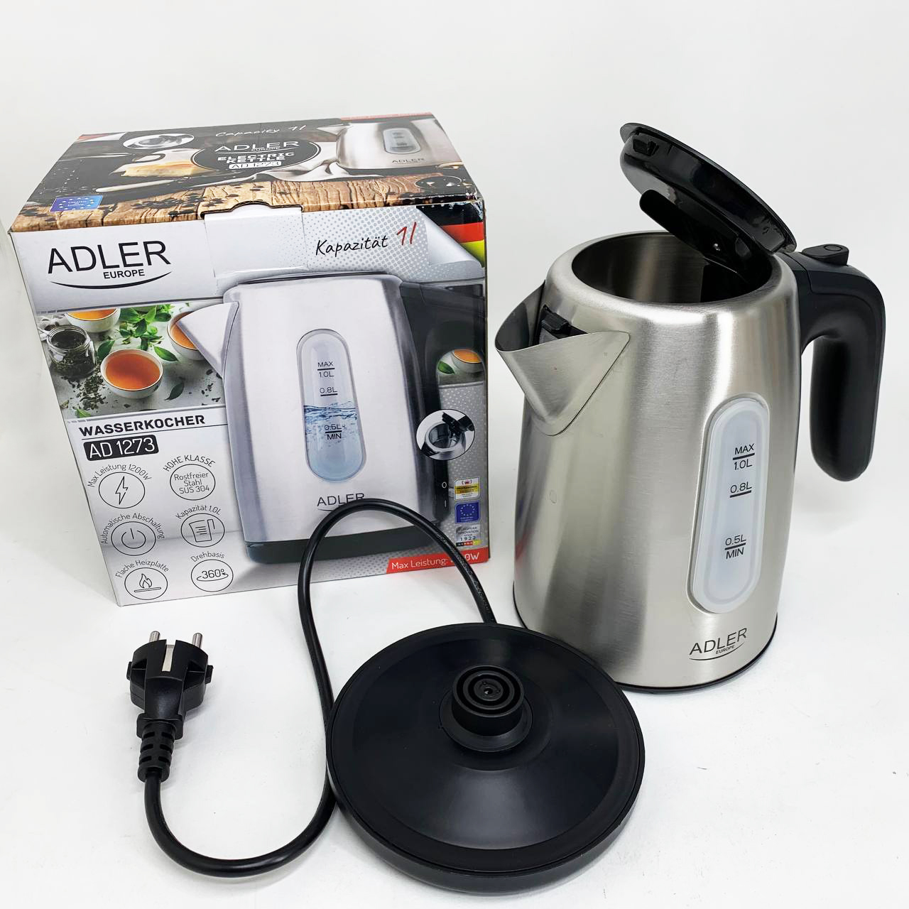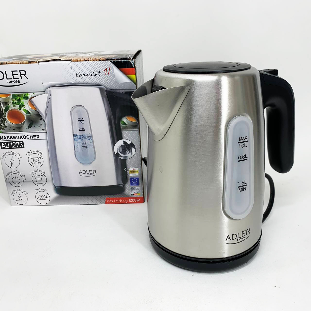 Однолітровий сучасний електрочайник у сріблястому корпусі знадобиться на будь-якій кухні, в офісі та в гуртожитку. Функціональність збільшена за рахунок стійкої основи та чіткого двостороннього покажчика рівня води, смак та якість якої досягається за рахунок фільтра для відстоювання.