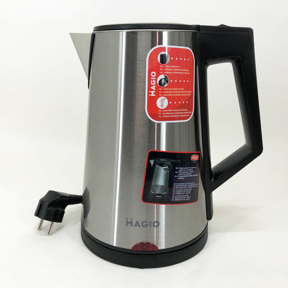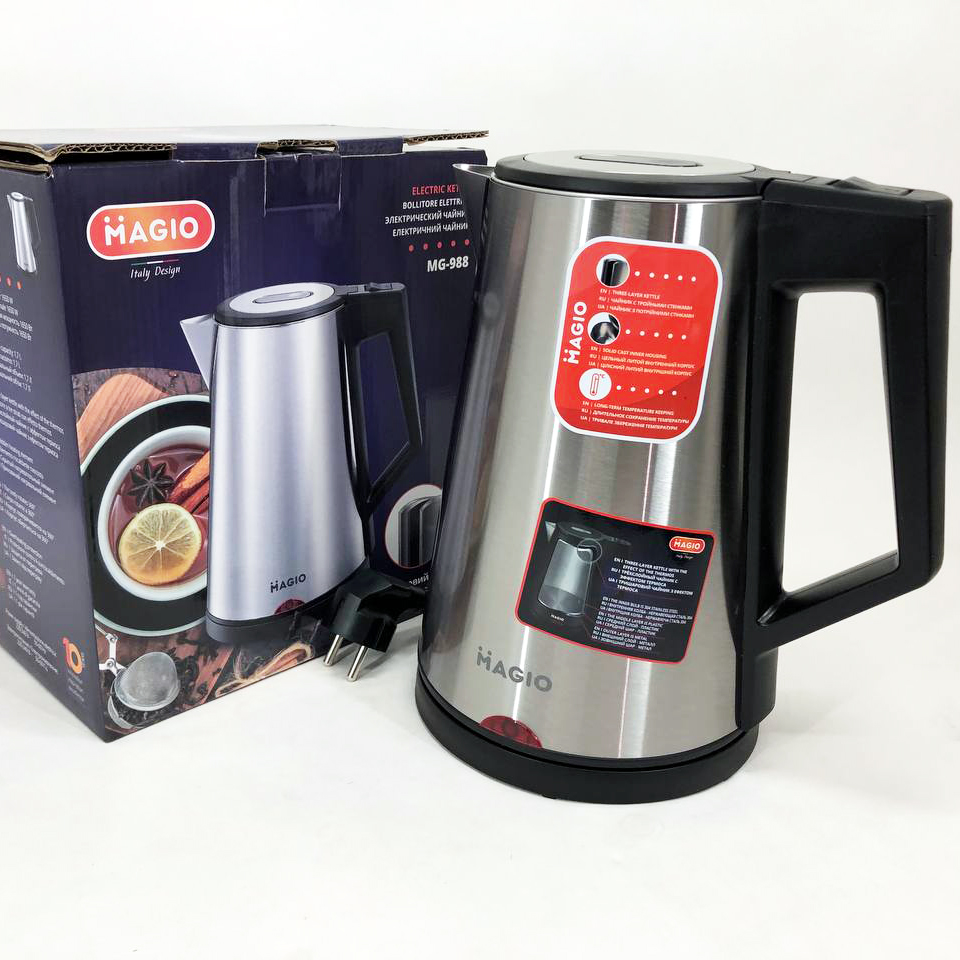 Чайник-термос MG-988 об’ємом 1.7 л поєднує в собі стильний дизайн з чудовою якістю та довговічністю. Чайник-термос завдяки потрійним стінкам нагрівається набагато швидше, заощаджуючи електроенергію та час, а ефект термоса збереже гарячу воду тривалий час.