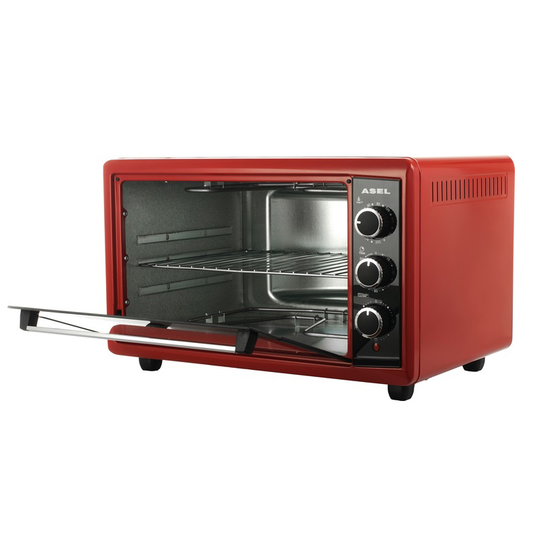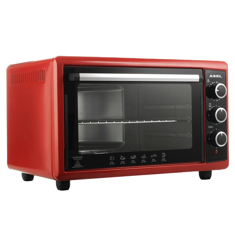 Електро духовка asel оснащена функціями розігріву їжі та напоїв. Потужність духовки становить 1,5 кВт. Корпус виготовлений з нержавіючої сталі та зверху прихований двошаровим біопокриттям із жаростійкого матеріалу. Усередині духовка легко чиститись. Крім цього, духовка оснащена сучасною системою теплоізоляції, має два вбудовані нагрівальні елементи. верхній та нижній. Турецька духовка містка та функціональна. Об’єм Духовка електрична asel досить великий і становить 50 л.