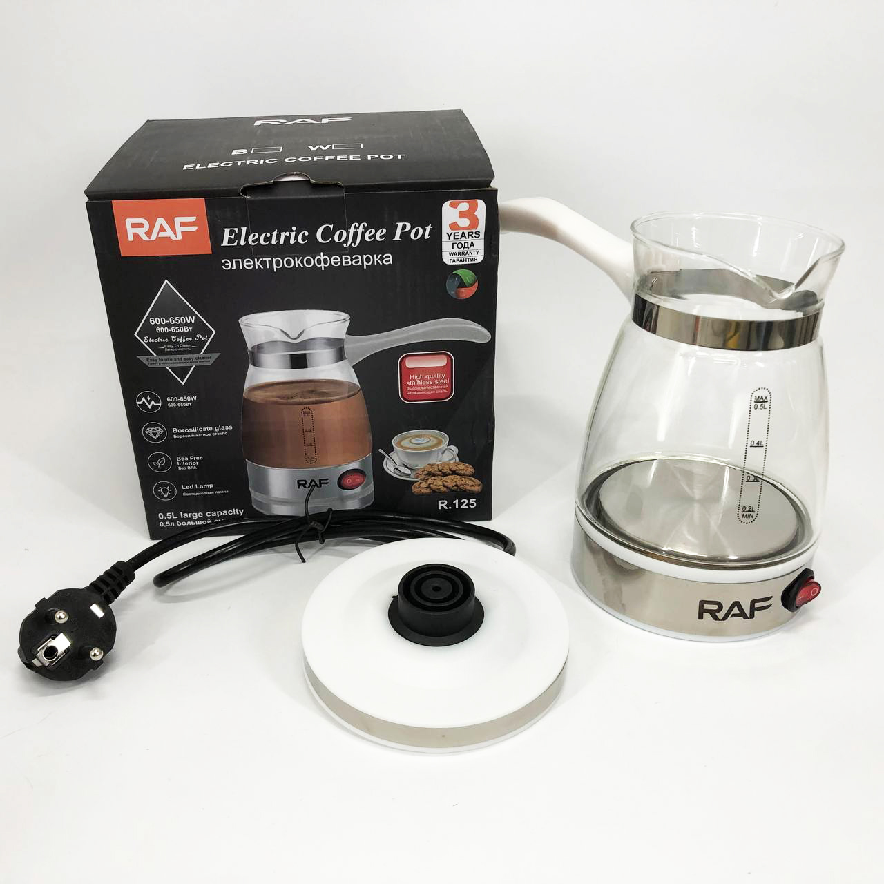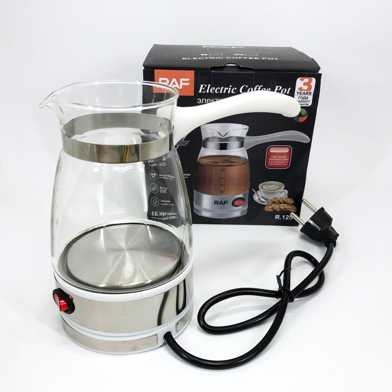 RAF R 125 – це компактна та стильна кавоварка на 0,5 літра , яка2-3 чашки запашної кави всьогомінімалістичний дизайнгармонійнодля дому, офісу чи подорожей .