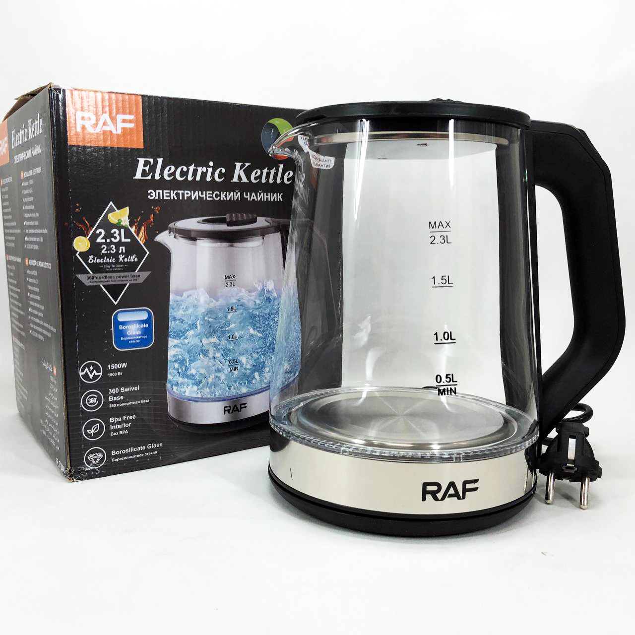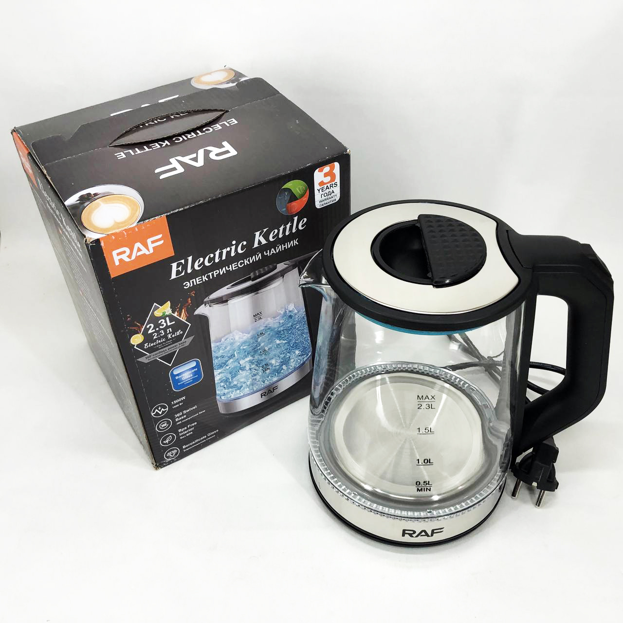 Електричний скляний чайник RAF-7846- виконаний із загартованого скла, яке не “бояться” щодо високих температур. Підключається до мережі на 220В через круглу живильну базу і обертається на 360°. У цей скляний чайник вбудовані такі функції, як автоматичне відключення при закипанні води, захисний пристрій при включенні без води та захист від перегріву, а також він оснащений сітчастим фільтром для очищення кип’яченої води від дрібних частинок.