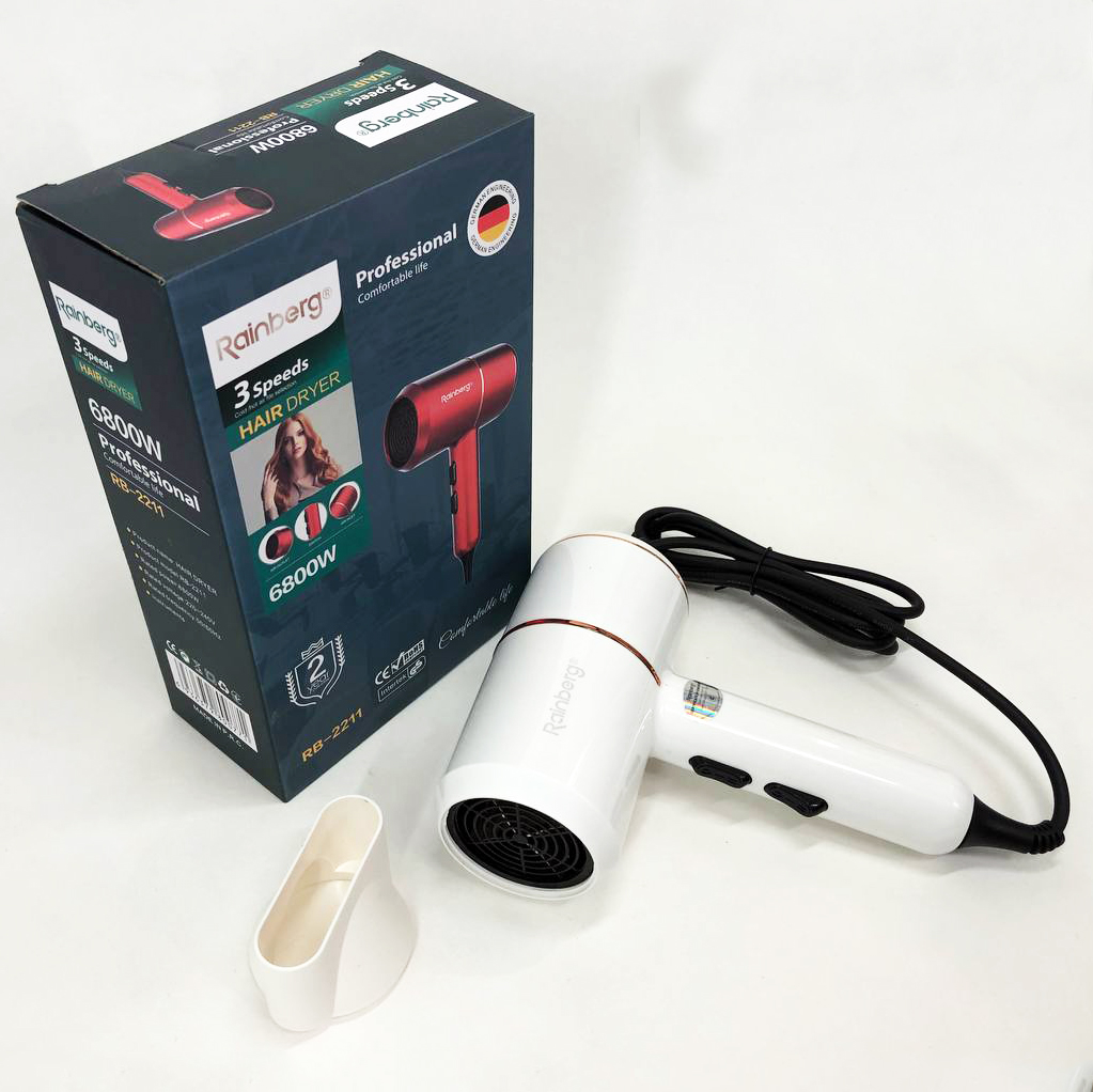 - Фен Rainberg відрізняється гарним дизайном та доступною ціною з великим набором функцій