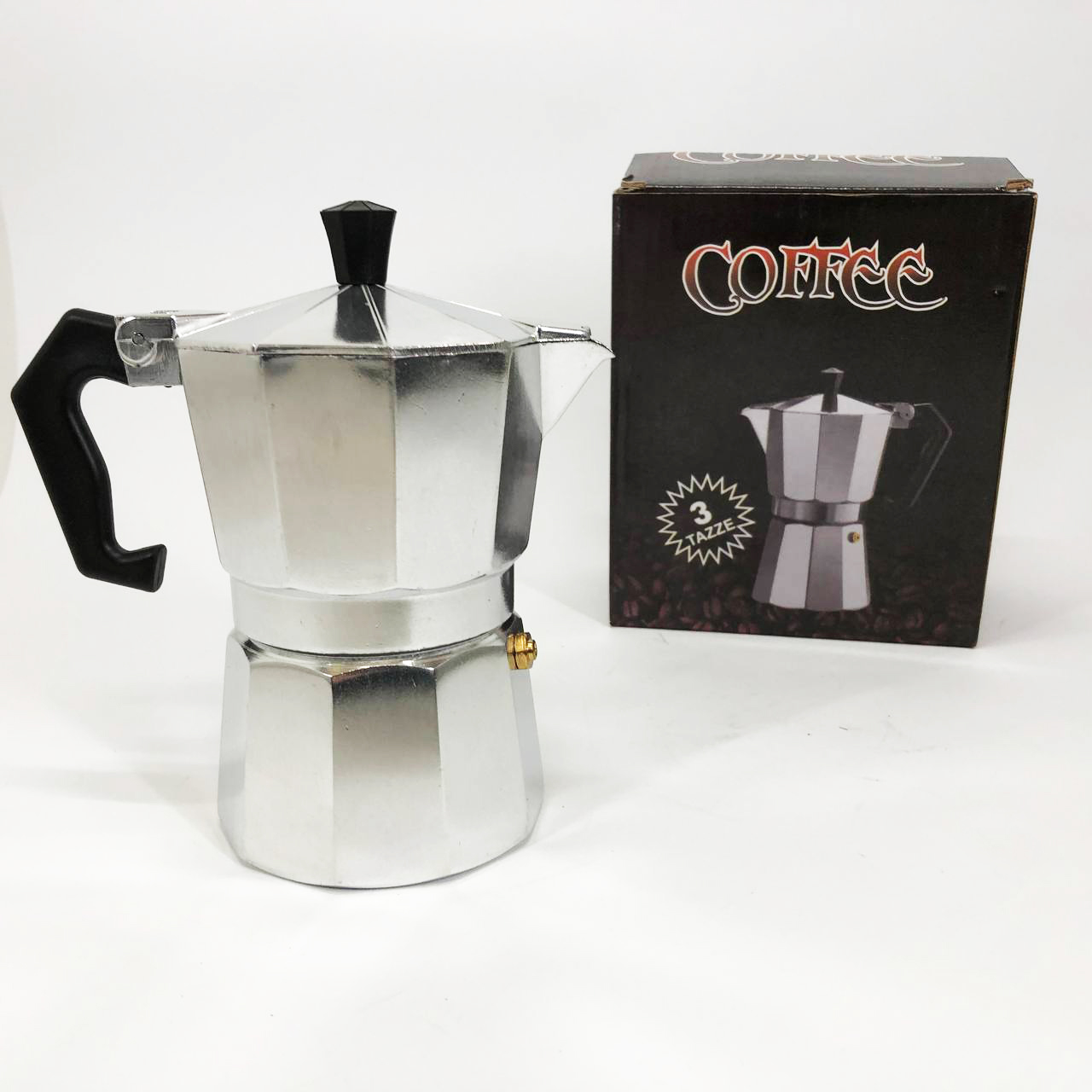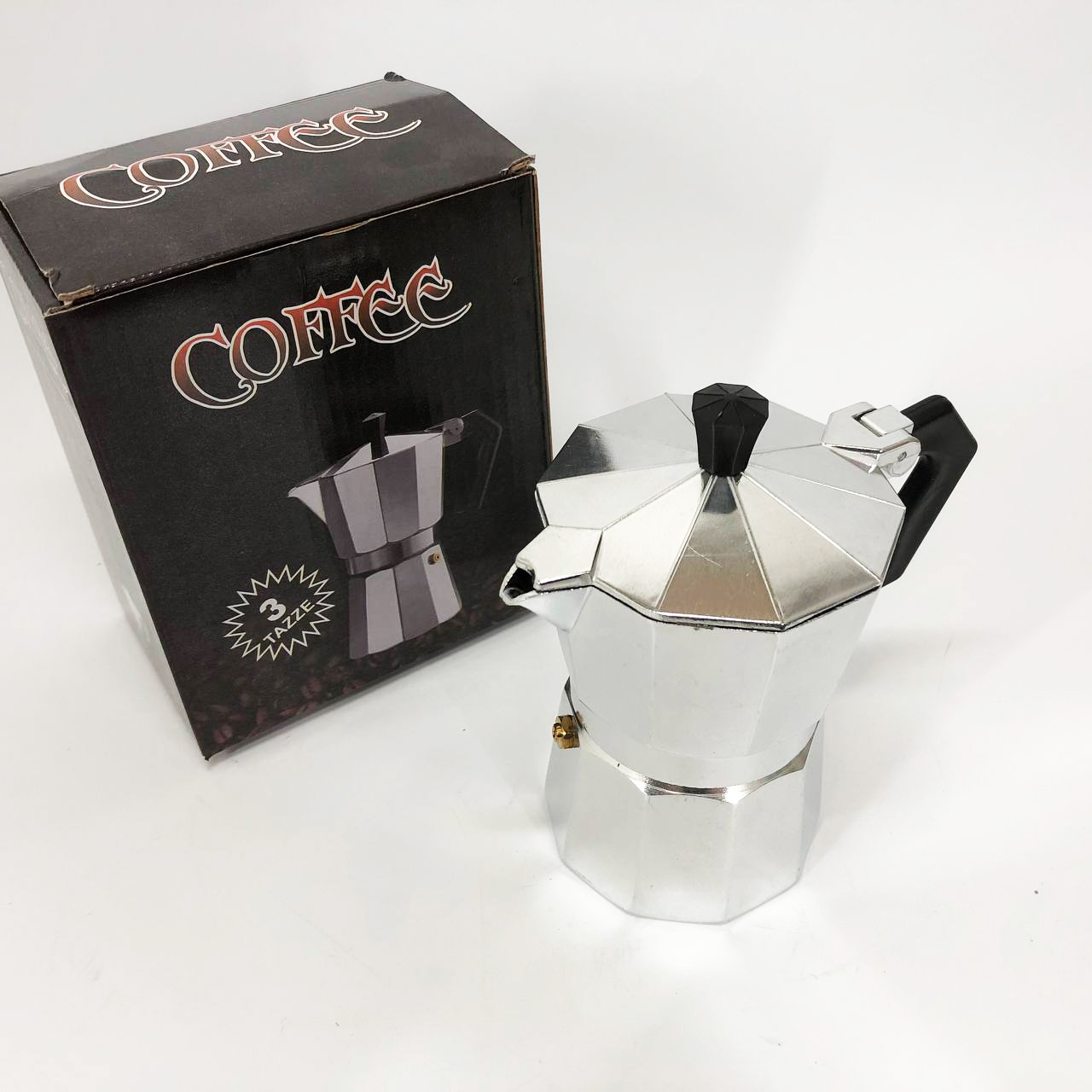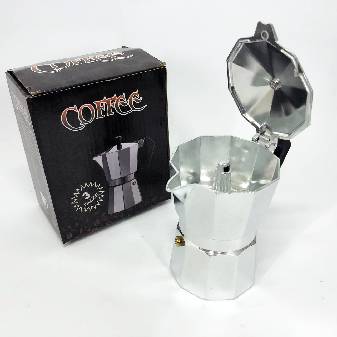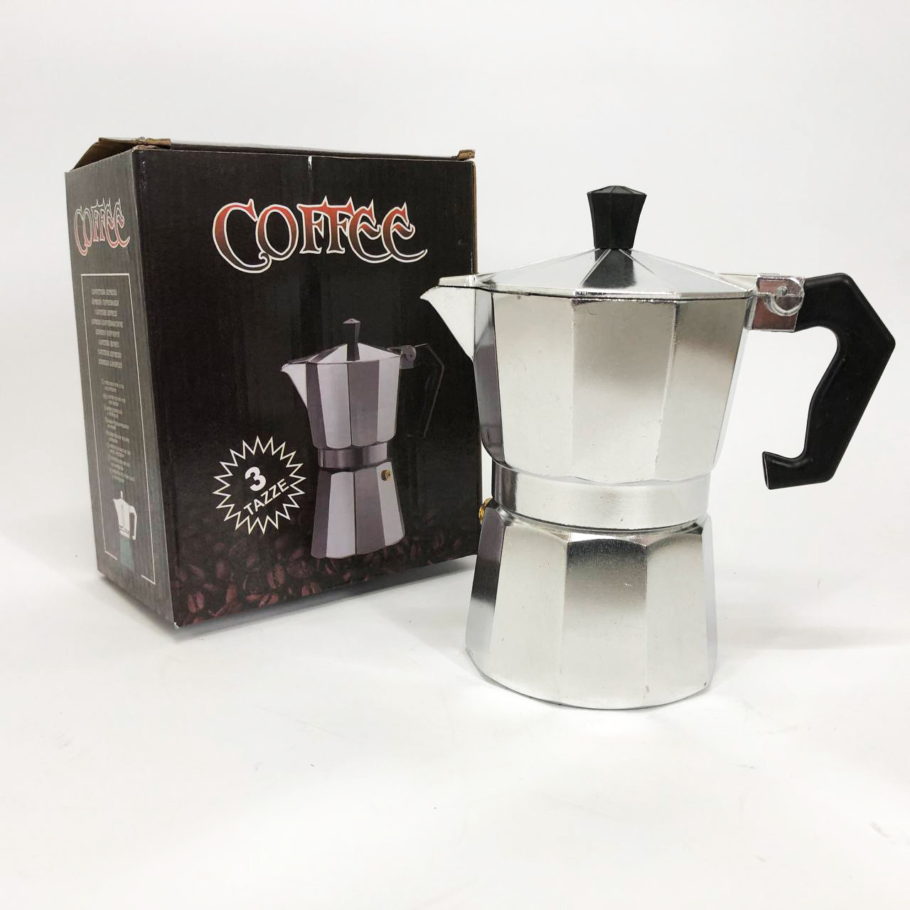 Ця кавоварка гейзерного типу складається з трьох основних частин – резервуара для води, фільтра для меленої кави та ємності для готового напою.