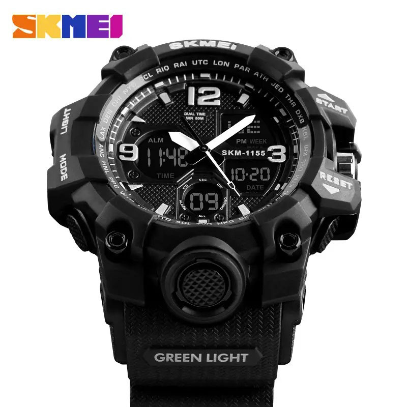 Годинник наручний чоловічий SKMEI 1155BBK, армійський годинник протиударний. Колір: чорний