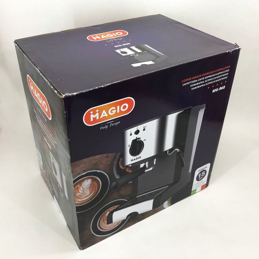 Кавоварка еспресо Magio MG-960 розроблена для справжніх цінителів кави. Адже з її допомогою Ви зможете приготувати не тільки смачну каву, але ще капучіно та латте. При цьому процес приготування повністю функціональний і практичний. >15 бар і зробить смак кави ще більш ароматною та насиченою.