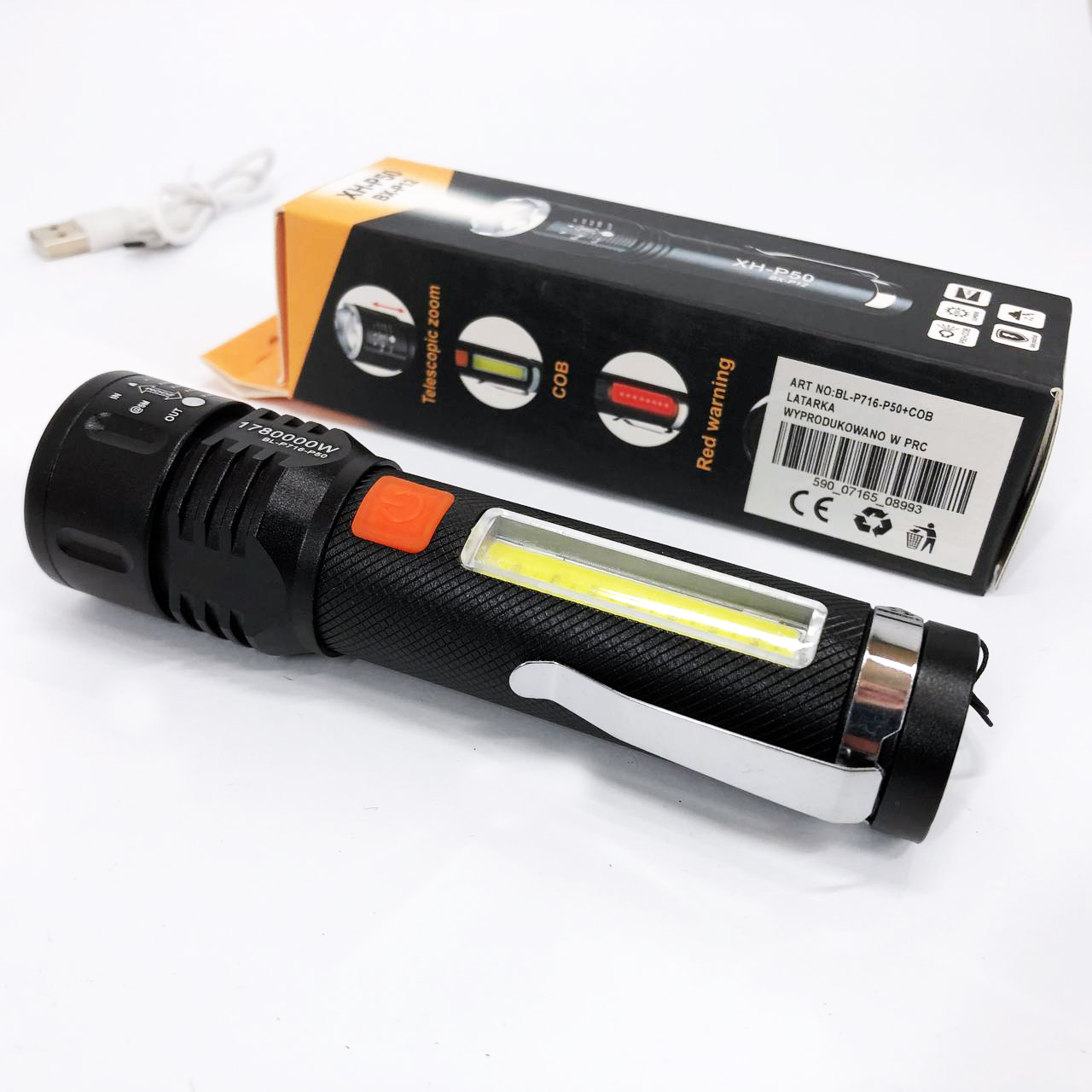 - Тип товару: ручний акумуляторний ліхтар з LED-елементами P50 і COB.