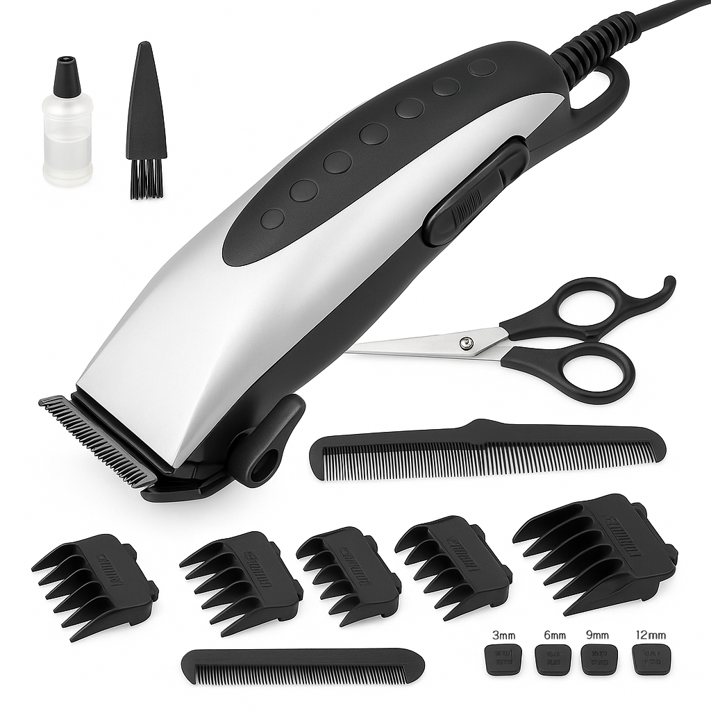 Машинка для стрижки MS 3305 — практичний та універсальний пристрій, що дозволяє швидко та зручно підрівняти волосся з точною настройкою довжини. Конструйована з урахуванням потреб як домашніх користувачів, так і професійних перукарів, вона забезпечує стабільну роботу від електромережі при мінімальному енергоспоживанні.