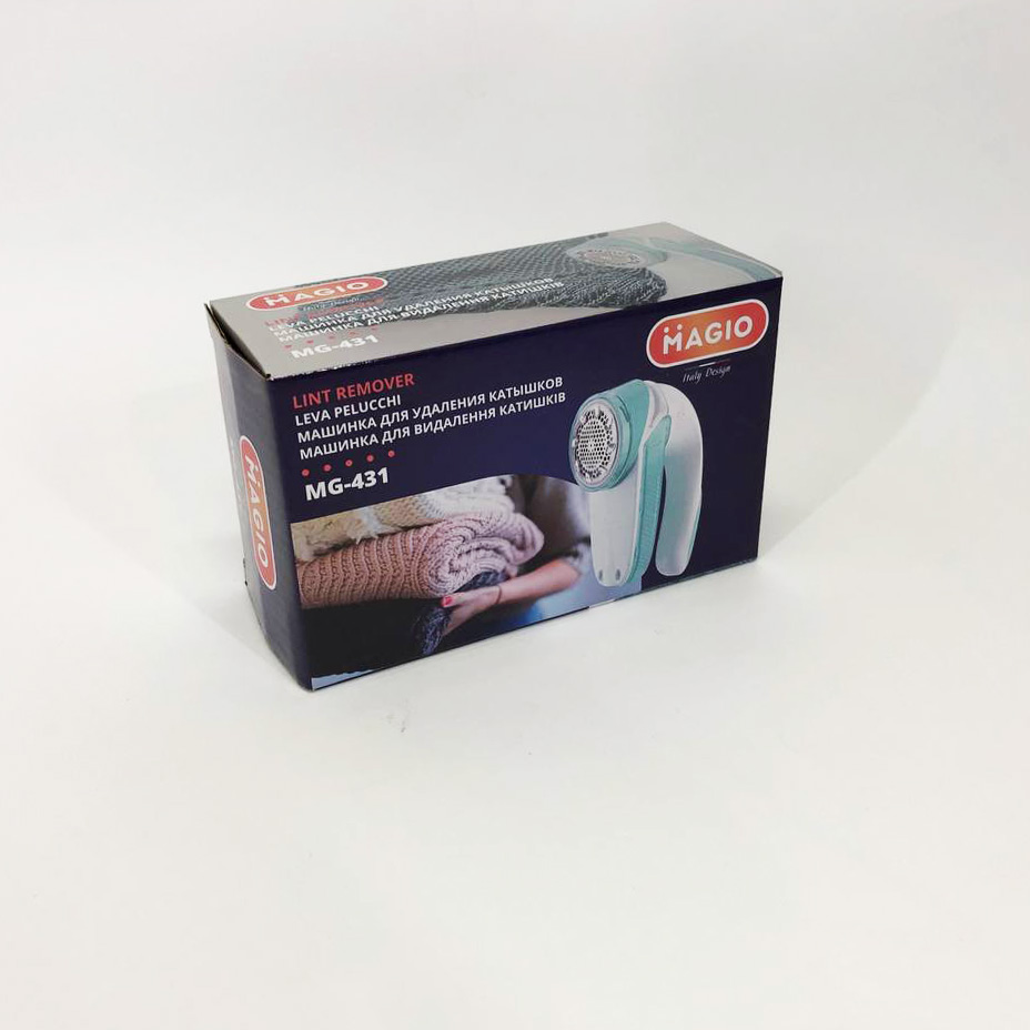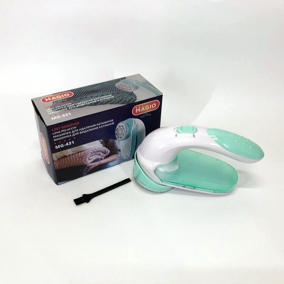 MAGIO MG-431 має зручну витягнуту ручку і виконана з високоякісного пластику. Захисна металева сітка має середні отвори, що дає можливість швидше впоратися з великими катишами, які не застрягнуті в машинці. Також пристрій має знімний контейнер, куди потрапляють зголені залишки, який можна легко зняти та очистити.