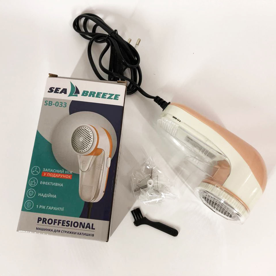 Ергономічна форма ідеально лягає в руку. Прозорий кошик для сміття показує, коли його потрібно спорожняти. Машинка Sea Breeze швидко та ефективно видаляє катишки.