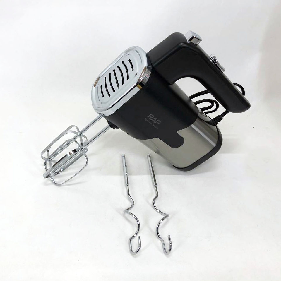 Міксер RAF R-6630 має 5 режимів швидкостей. Також є режим «Турбо», що збиває дуже швидко. Для зручності виконання різних функцій є два види насадок – віночки для збивання та гаки для тіста. Змінити їх можна простим натисканням кнопки.