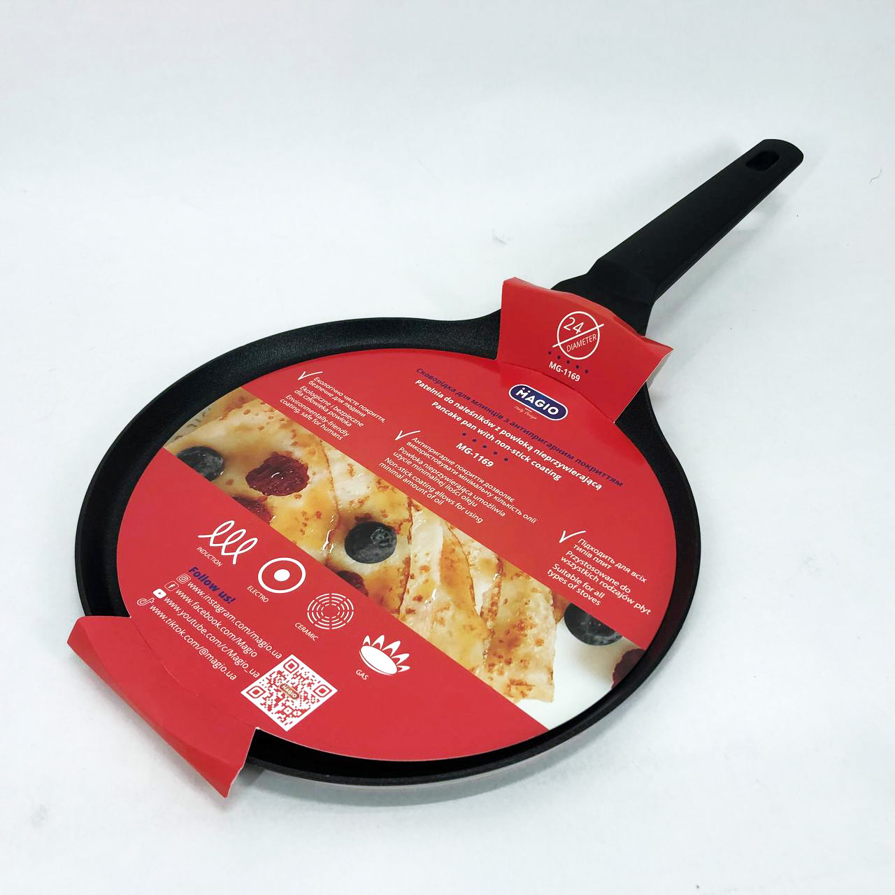 Сковорідка Magio MG-1169 стане універсальним помічником на кухні для тих, хто цінує якість і зручність. Вона ідеально підходить для випікання млинців, оладок, тонких коржів та інших страв, що потребують делікатного теплового режиму і антипригарного ефекту. Завдяки сумісності з різними типами плит її можна використовувати в домашніх та професійних умовах, забезпечуючи відмінні результати за будь-яких умов.