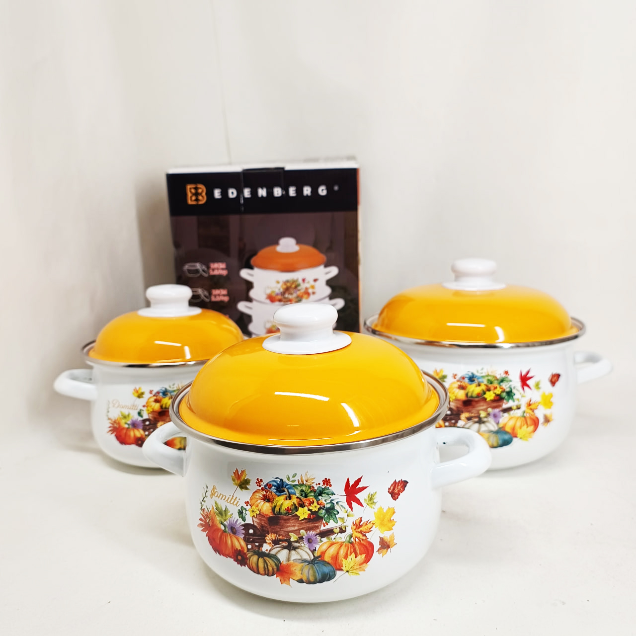 - Комплектація: 6 предметів (3 каструлі + 3 металеві кришки)