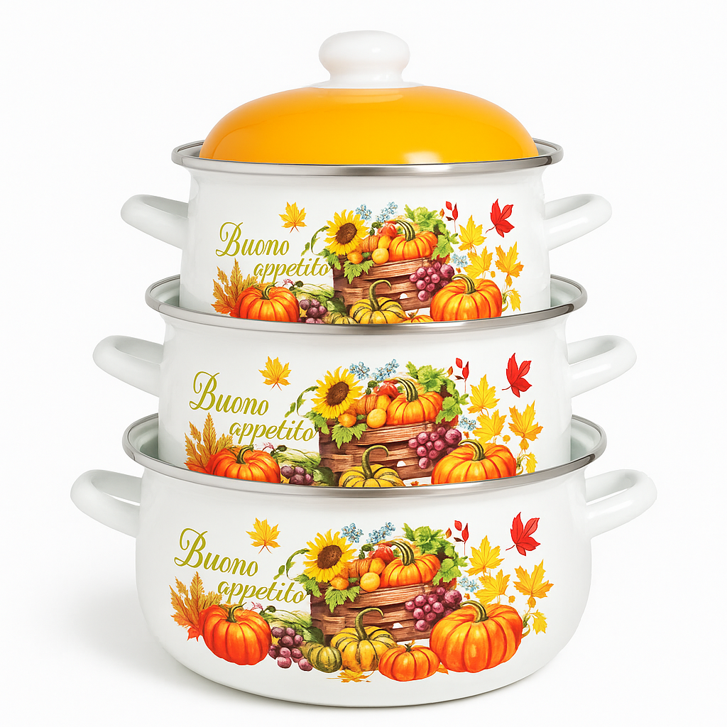Професійний набір каструль з емальованої нержавіючої сталі стане основою вашої кухні, забезпечуючи зручність і довговічність при приготуванні будь-яких страв. Завдяки стильному дизайну та функціональності, цей посуд ідеально підходить для щоденного використання, поєднуючи естетичний зовнішній вигляд і високі технічні характеристики.