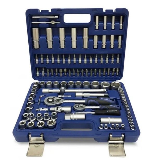 Цей набір інструментів в кейсі зібрав у себе все необхідне для роботи з будь-якими різьбовими кріпленнями і навіть більше! Трискачки, головки, подовжувачі, головки з насадками, біти, кардани, головки »зірочки& і ще цілий кейс такого необхідного будинку інструменту.