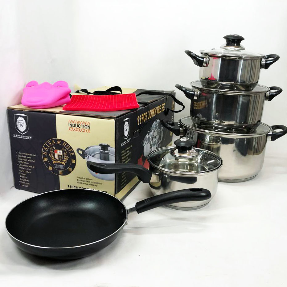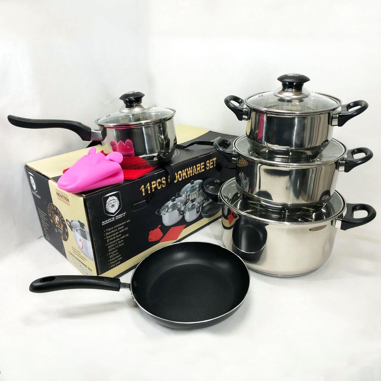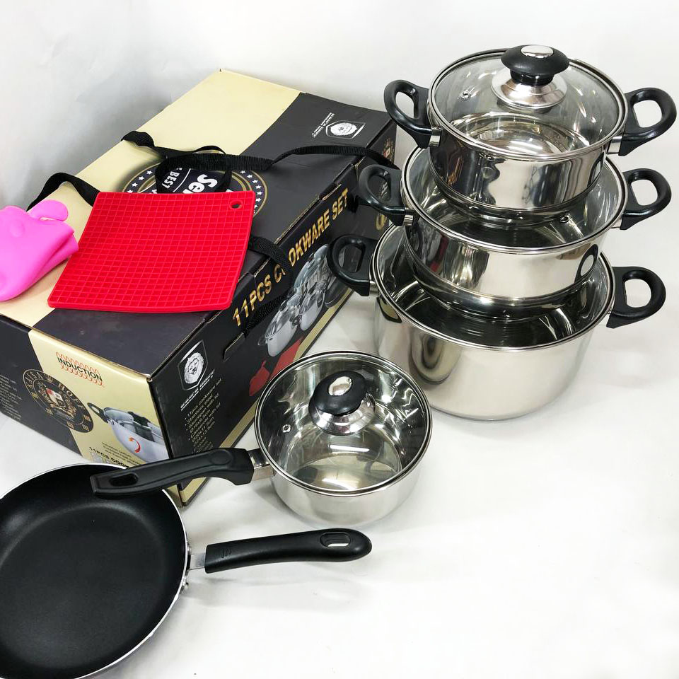 Набір каструль 11 предметів VS-1005-11 із нержавіючої сталі, кришка скло, набір казанів