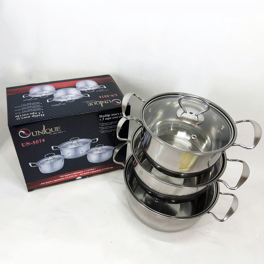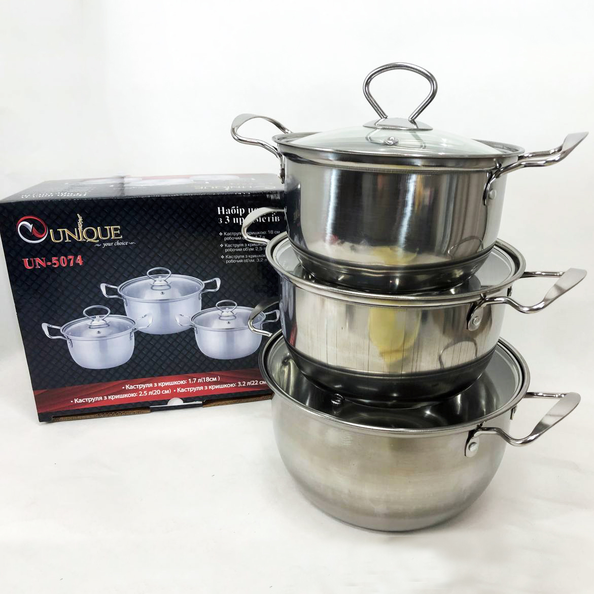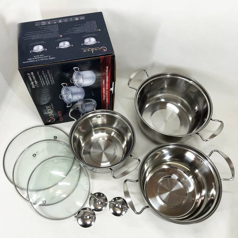 2203202669bfeff4584bf.jpegНабір каструль із нержавіючої сталі з кришками UNIQUE UN-5074, набір посуду для електричних плит