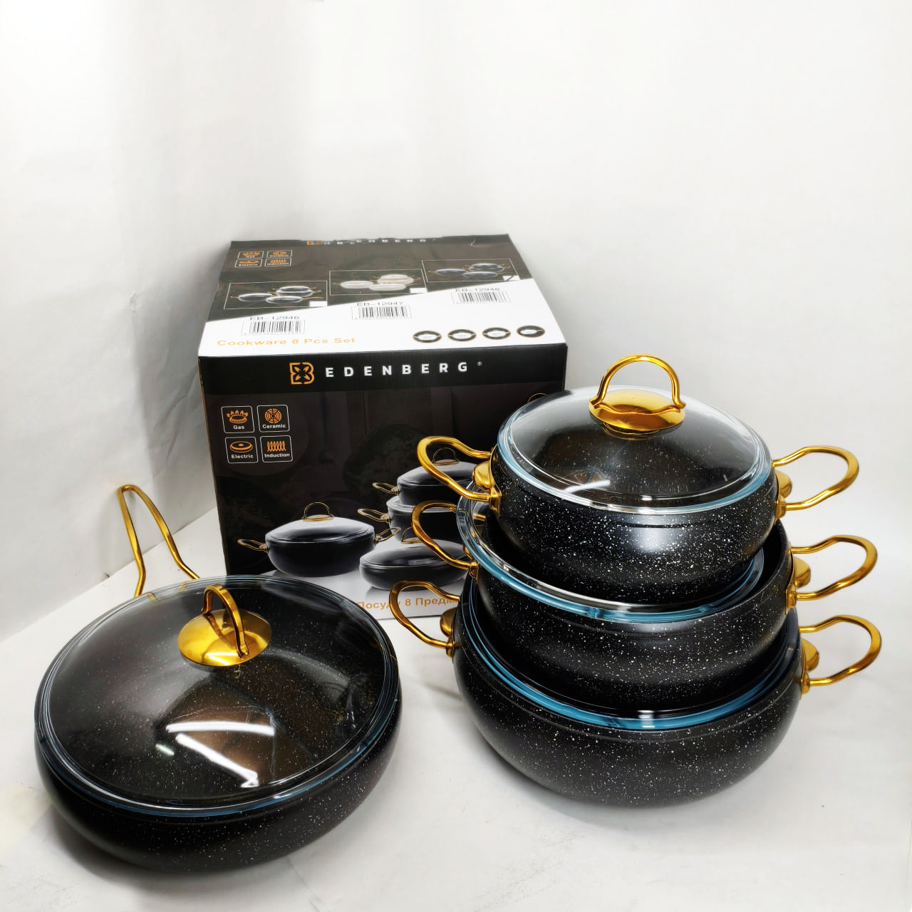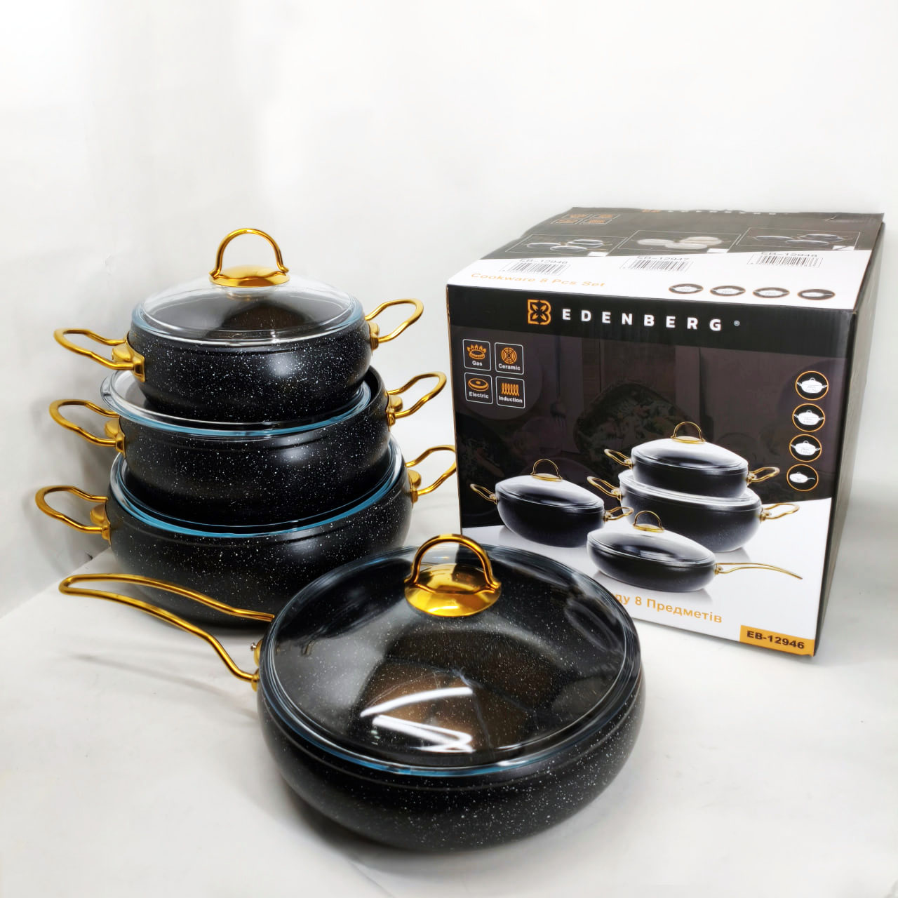 Набір кухонного посуду Edenberg EB-12948 8 предметів з мармуровим антипригарним покриттямНабір кухонного посуду Edenberg EB-12948 8 предметів з мармуровим антипригарним покриттям