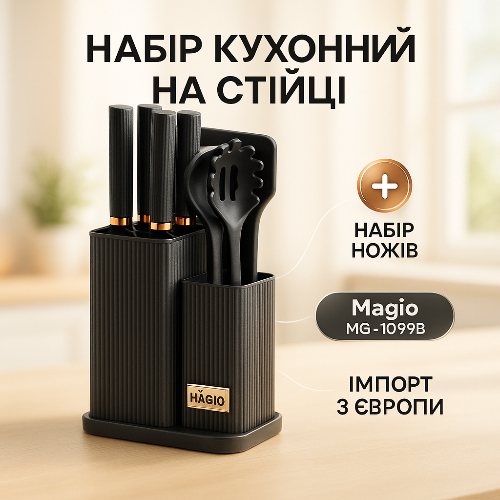 - Комплексне оснащення кухні: 10 різних інструментів для різних операцій — від нарізки до сервірування.