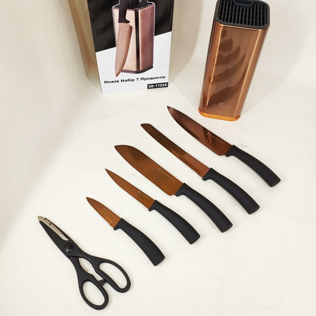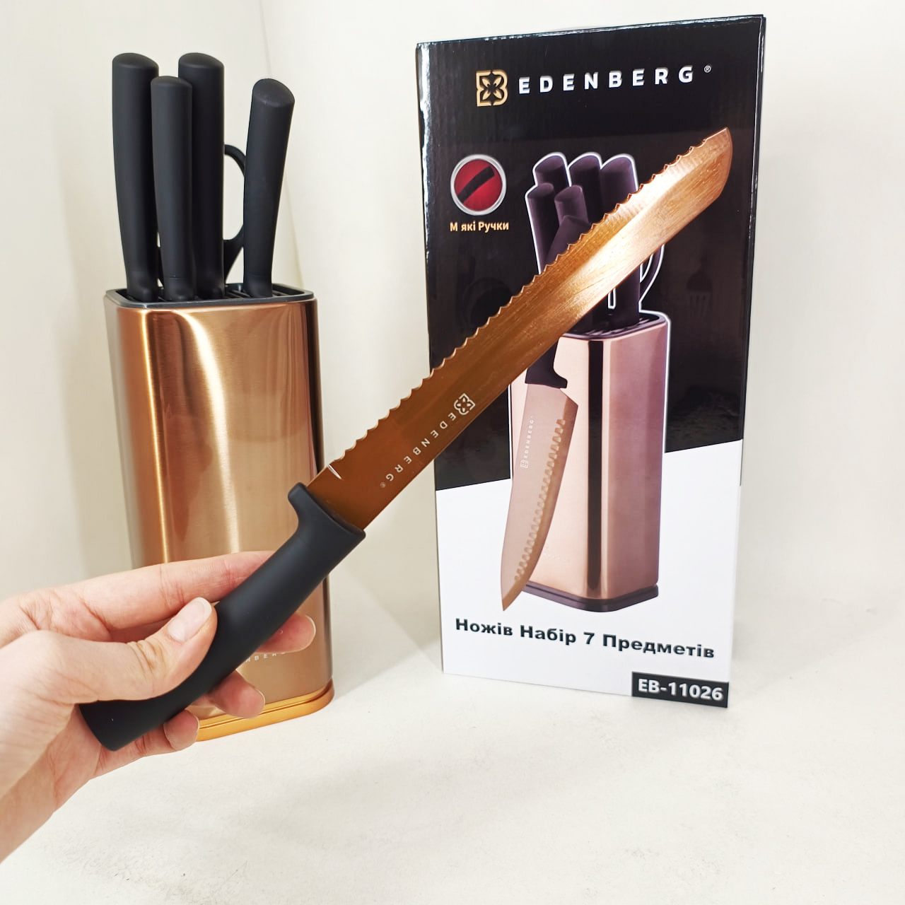 Набір ножів Edenberg EB-11026— це функціональний та стильний комплект для сучасної кухні, виконаний у елегантному кольорі рожевого золота. Розширена комплектація робить набір універсальним рішенням для нарізування м’яса, риби, овочів, фруктів, хліба та інших продуктів.