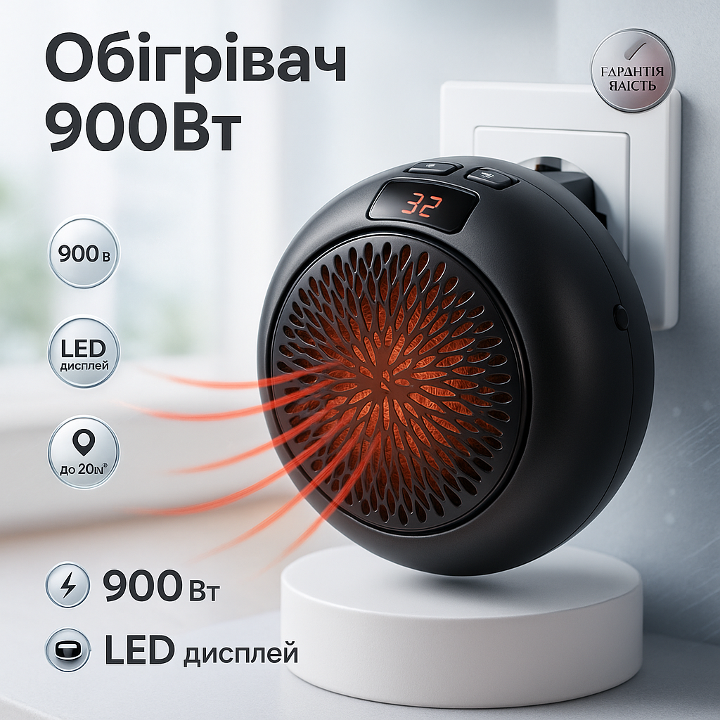 Ви можете швидко нагріти практично будь-яку кімнату у вашому будинку. Просто вставте нагрівач у будь-яку розетку та використовуйте цифровий контроль, щоб встановити ідеальну температуру.