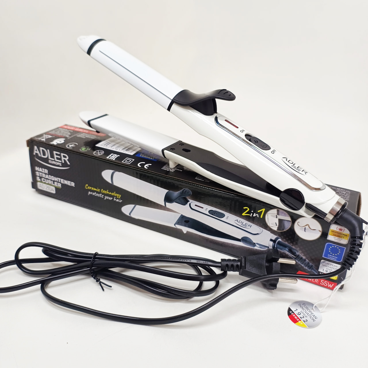 Adler AD-2104 – це універсальний стайлер, створений для комфортного створення бездоганних зачісок щодня. Він об’єднує функції випрямлення та завивки волосся, забезпечуючи професійний догляд у домашніх умовах. Завдяки спеціальним технологіям ця модель допоможе заощадити час і зберегти здоровий вигляд волосся, адаптуючись до різноманітних стилів і текстур.