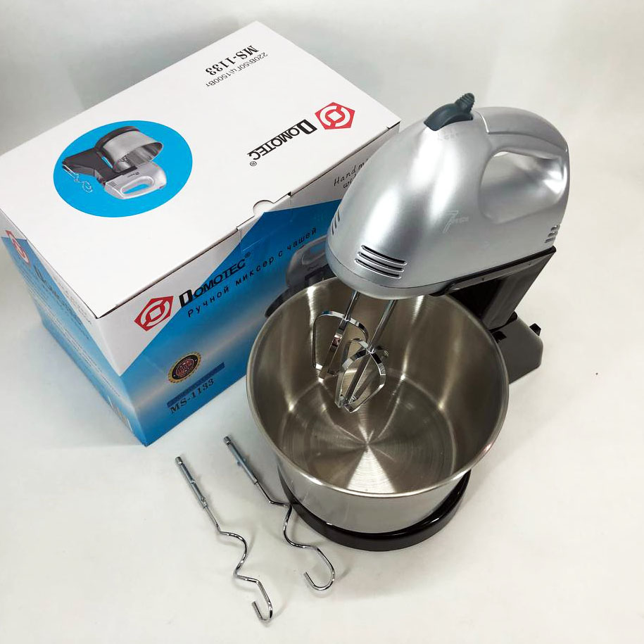 Міксер Domotec MS-1133 поєднує в собі властивості ручного та стаціонарного міксера. Він обладнаний мотором, потужність якого становить 200 Вт і дозволяє легко збивати яйця, соуси, бісквітне тісто тощо.