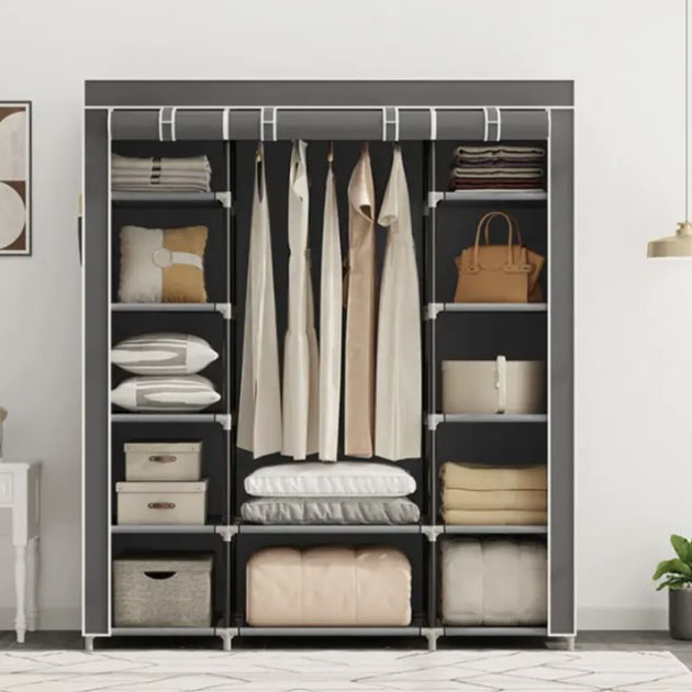 Якщо вам потрібен практичний і мобільний шафа для зберігання одягу та особистих речей, тканинний складний шафа стане відмінним рішенням. Компактний, легкий і зручний у використанні, він легко збирається і розбирається без додаткових інструментів, що робить його ідеальним вибором для дачі, орендованих квартир та гуртожитків. Незважаючи на простоту конструкції, шафа забезпечує надійний захист речей від пилу та зберігає місткість, порівнянну з класичними моделями з дерева.
