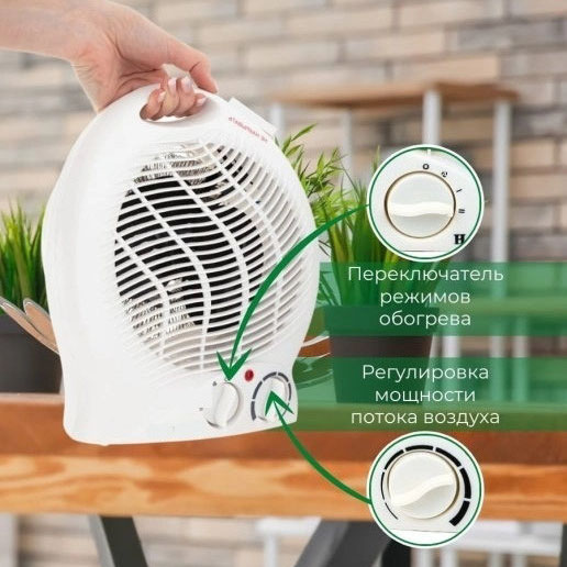 Корпус зроблений з термостійкого пластику, на якому розташовані світлодіодний регулятор роботи та два поворотні механічні перемикачі. Обігрівач має 3 режими роботи. Температуру нагрівання повітря можна регулювати за допомогою одного з перемикачів.