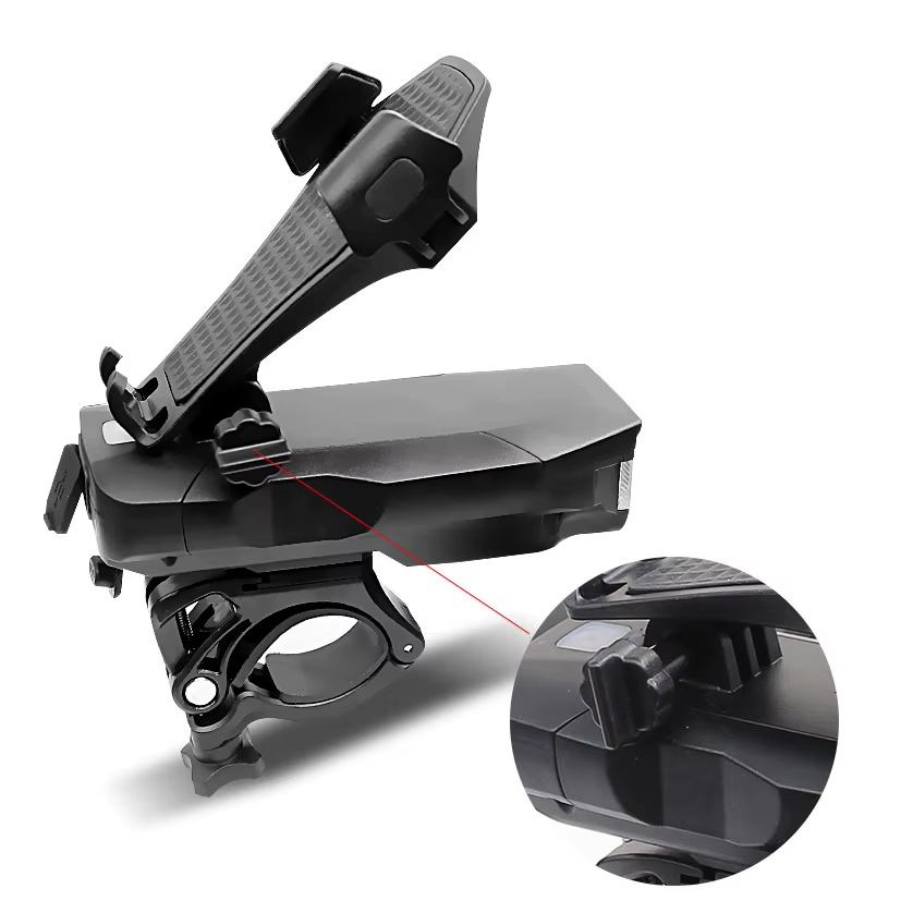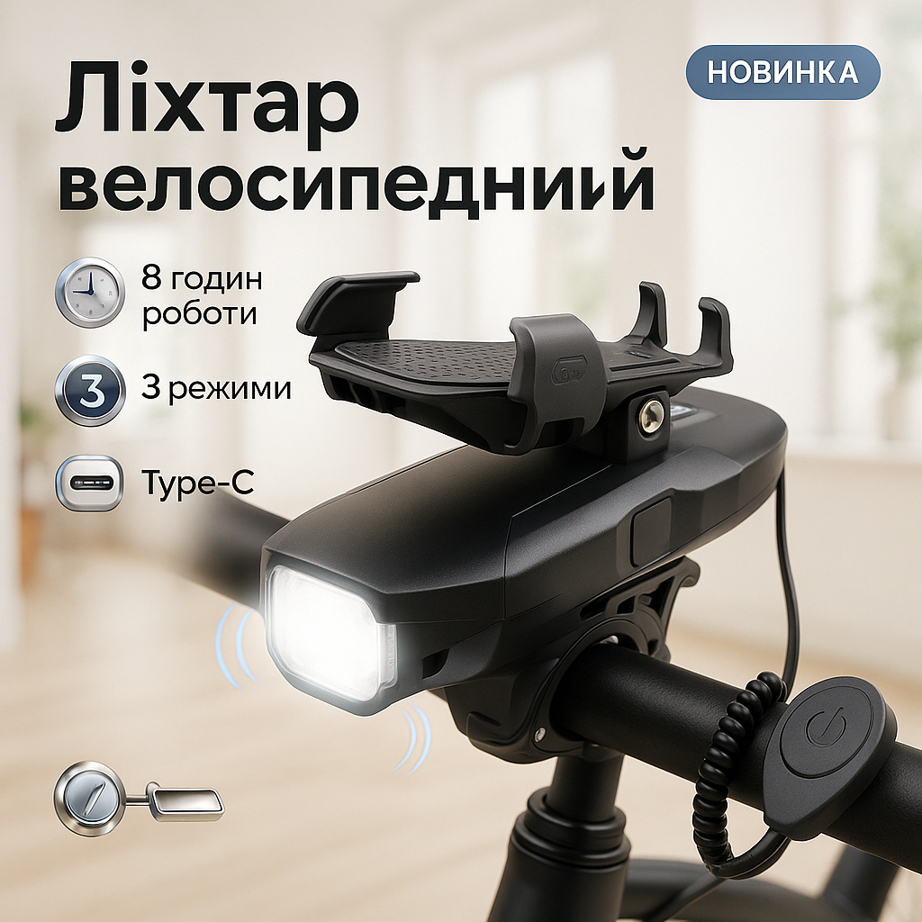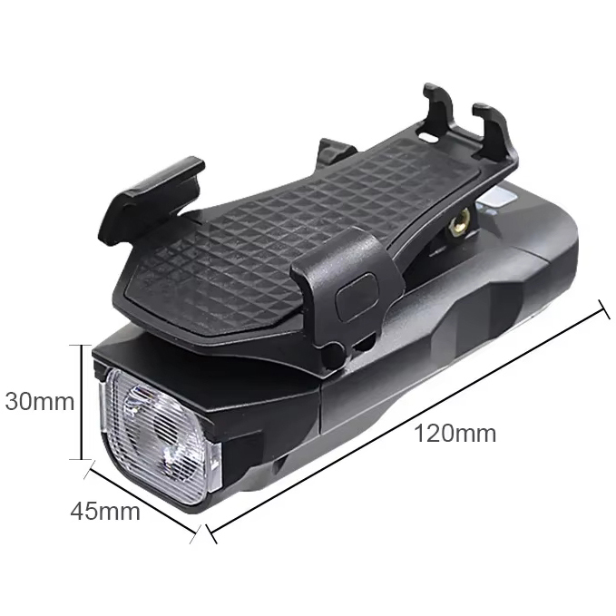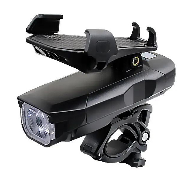 Велофонар із сигналом та утримувачем телефону BG-1951/HJ-068 — це багатофункціональний пристрій, що поєднує ліхтар, звуковий сигнал і тримач для смартфона. Яскравість світлового потоку становить 500 люменів, що забезпечує хорошу видимість дороги у темний час доби. Корпус виконаний із міцного пластику в чорному кольорі, відрізняється компактністю та зручністю у використанні.