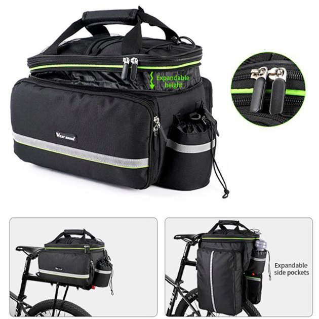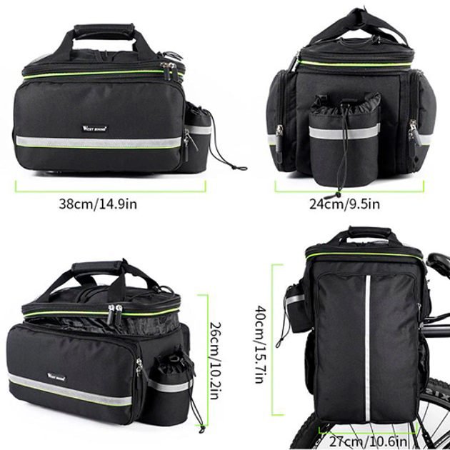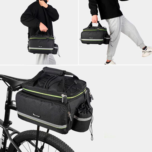 • Світловідбивні елементи на боках сумки допомагають позначити габарити велосипеда на дорозі у темний час доби