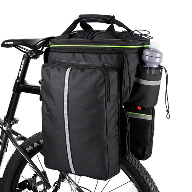 Сумка на велосипед об’ємом 25 літрів виготовлена з щільної тканини з покриттям, кріпиться на задній багажник велосипеда.