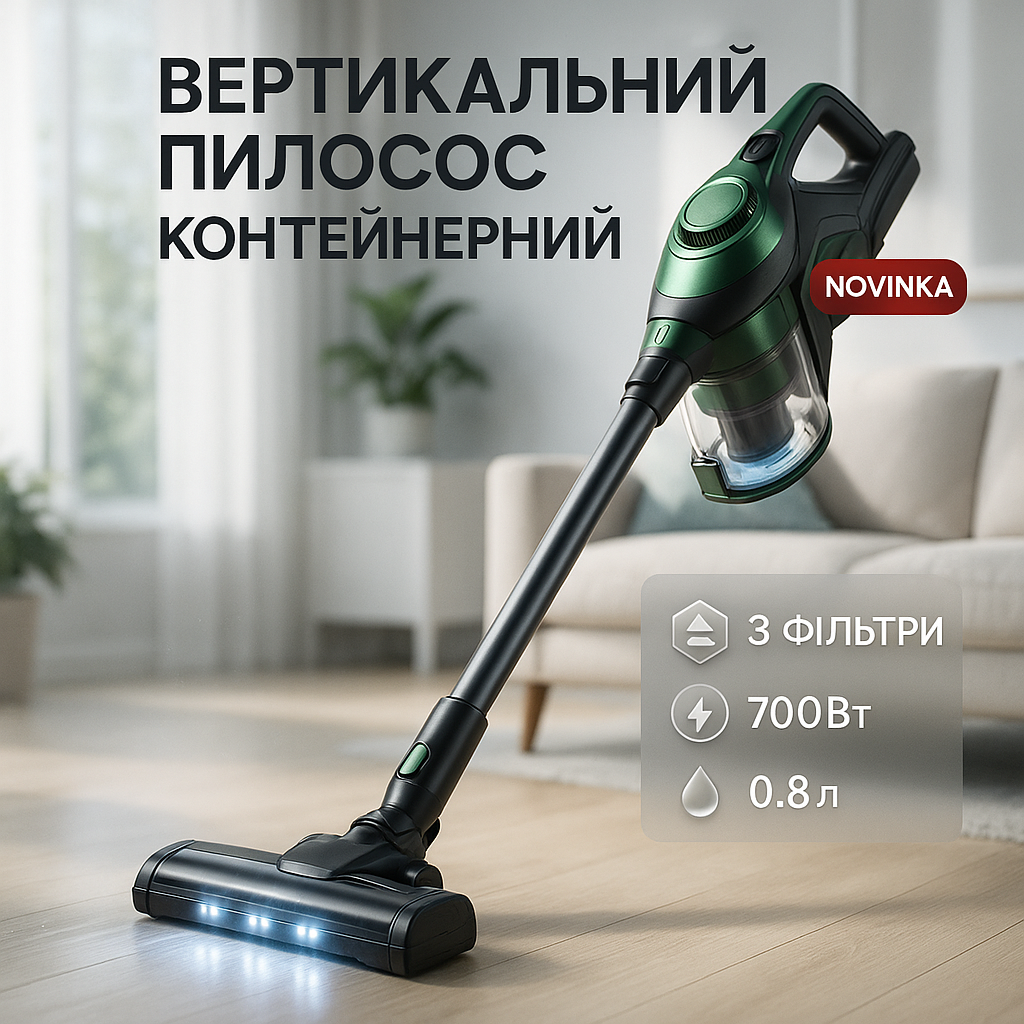 Вертикальний пилосос Adler AD 7083, зелений — 700Вт, HEPA 13, контейнер 0.8 л